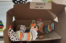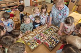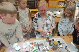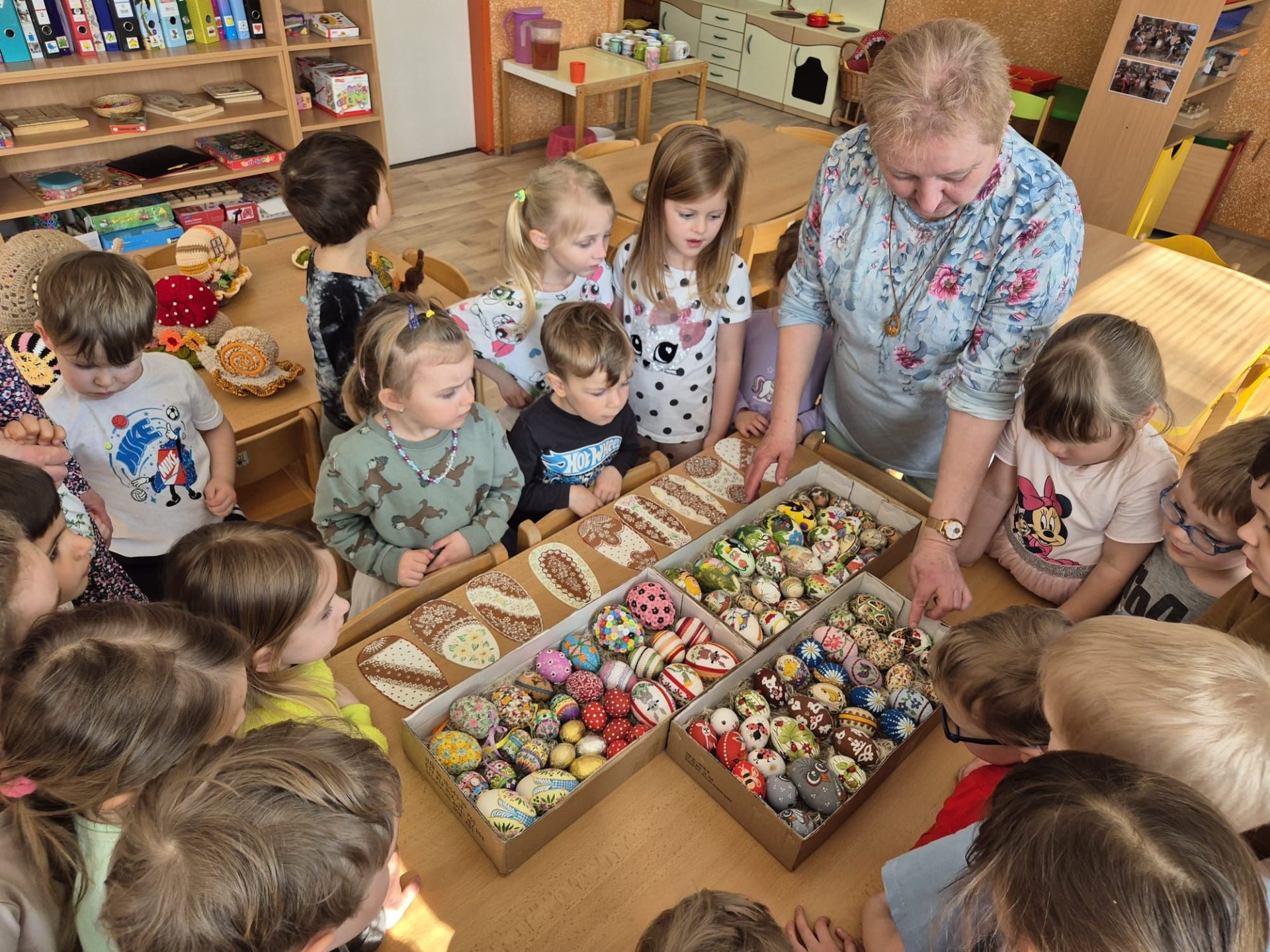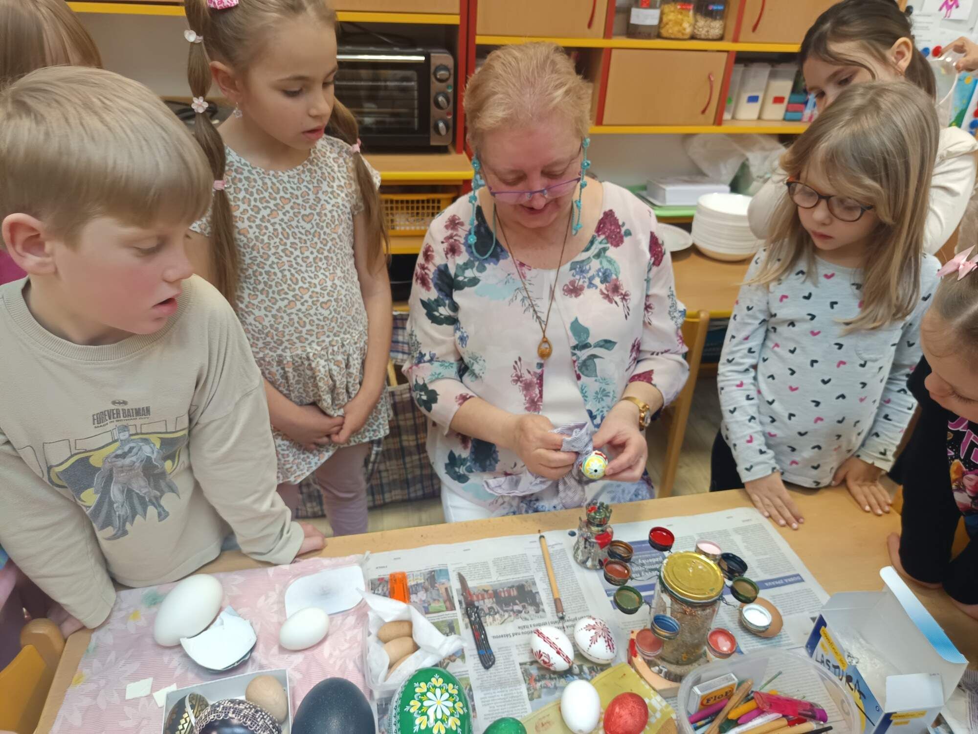 Dětem přišla ukázat část své sbírky kraslic, která čítá 2500 vajíček. Připravila pro ně také názorné ukázky zdobení a drobné dárky. Všem se dílničky moc líbily.