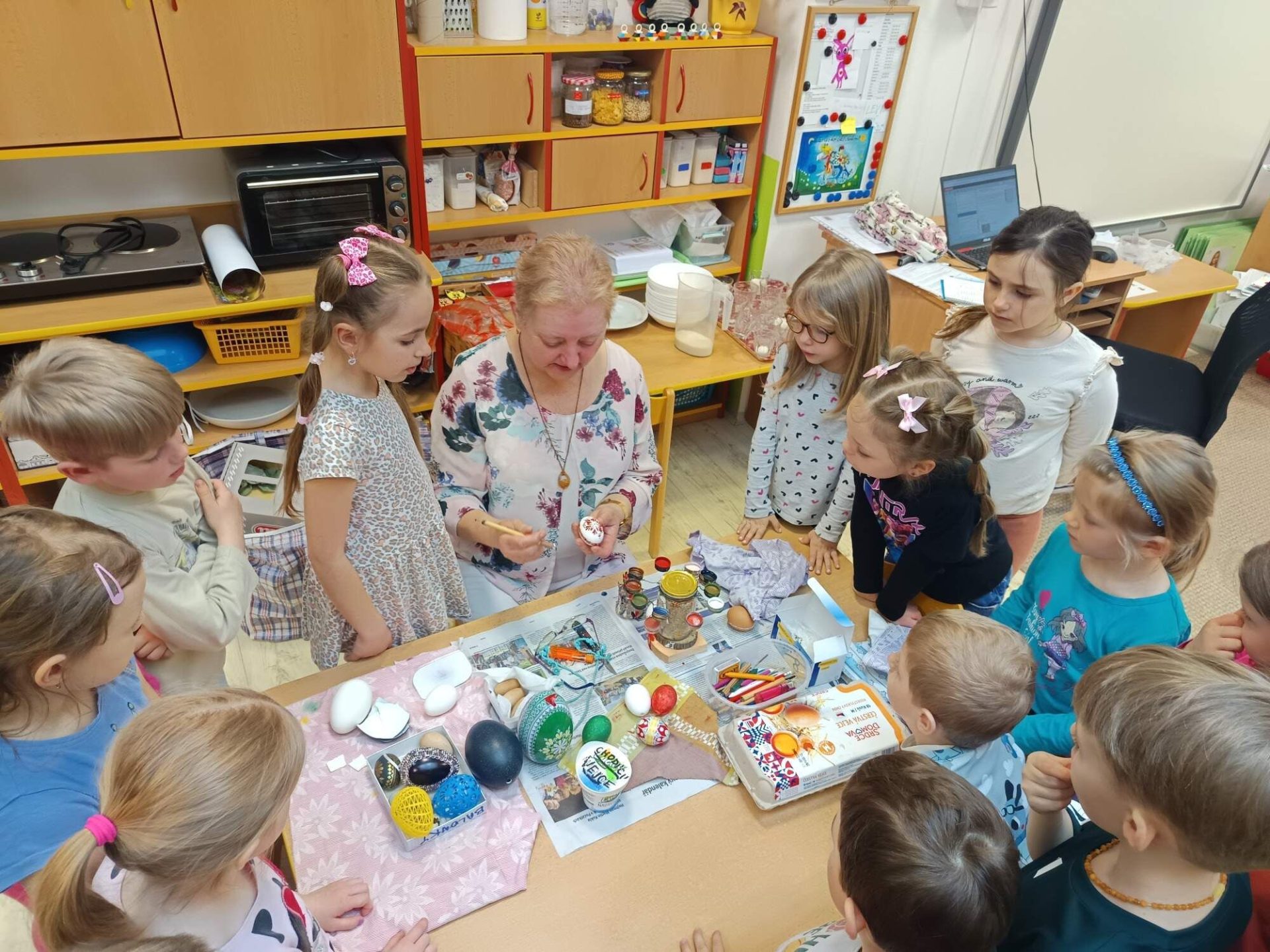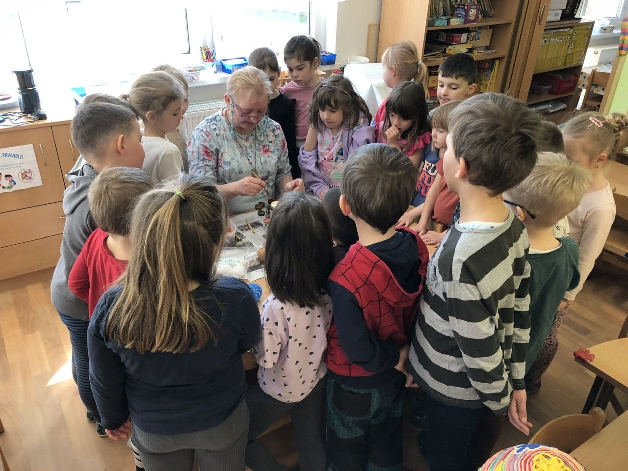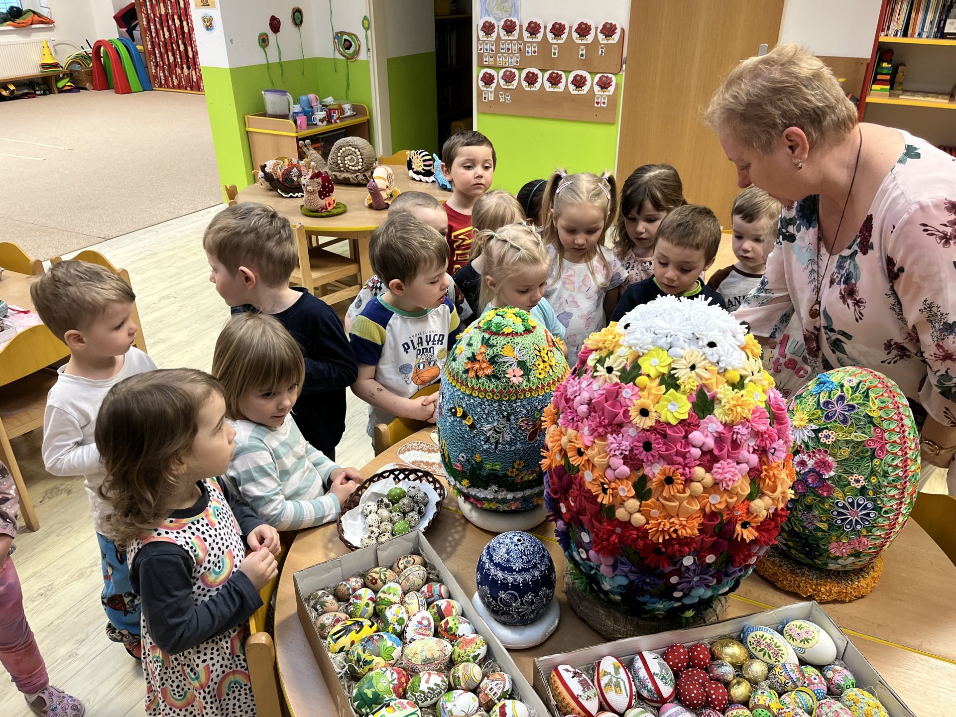 Všichni se těší a připravují na svátky jara, stejně tak naše děti z mateřské školy. V tomto čase k nám zavítala paní Drahoslava Horká z Pohledce.