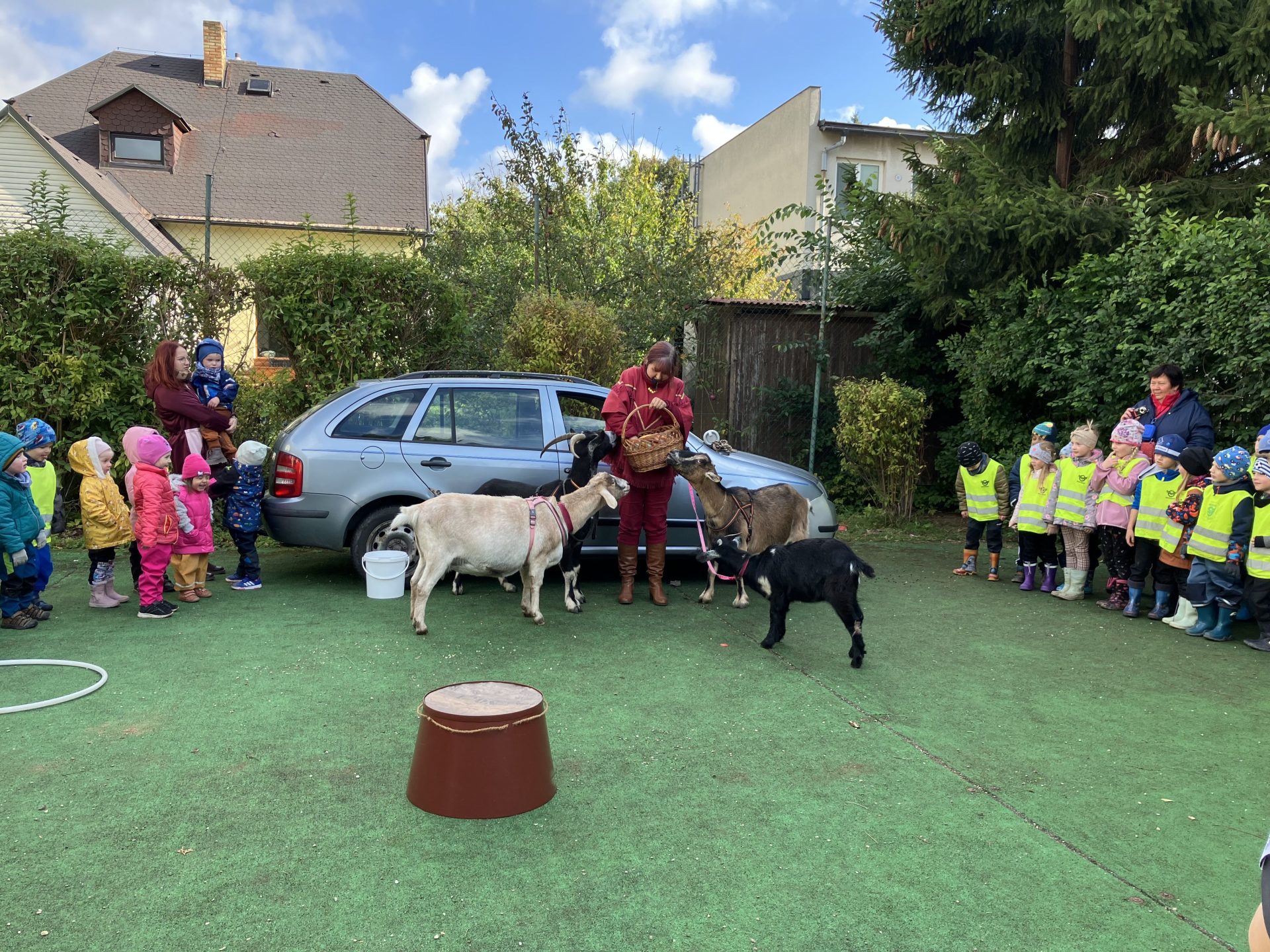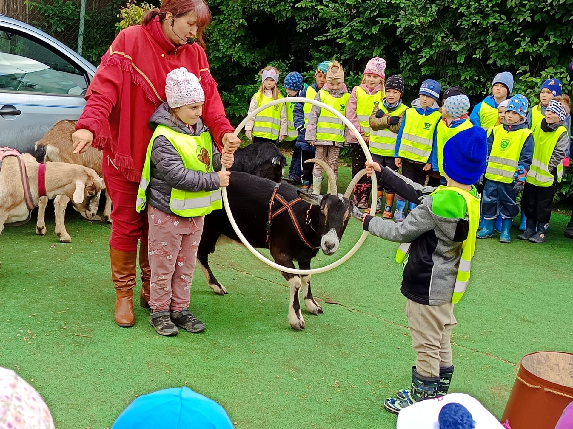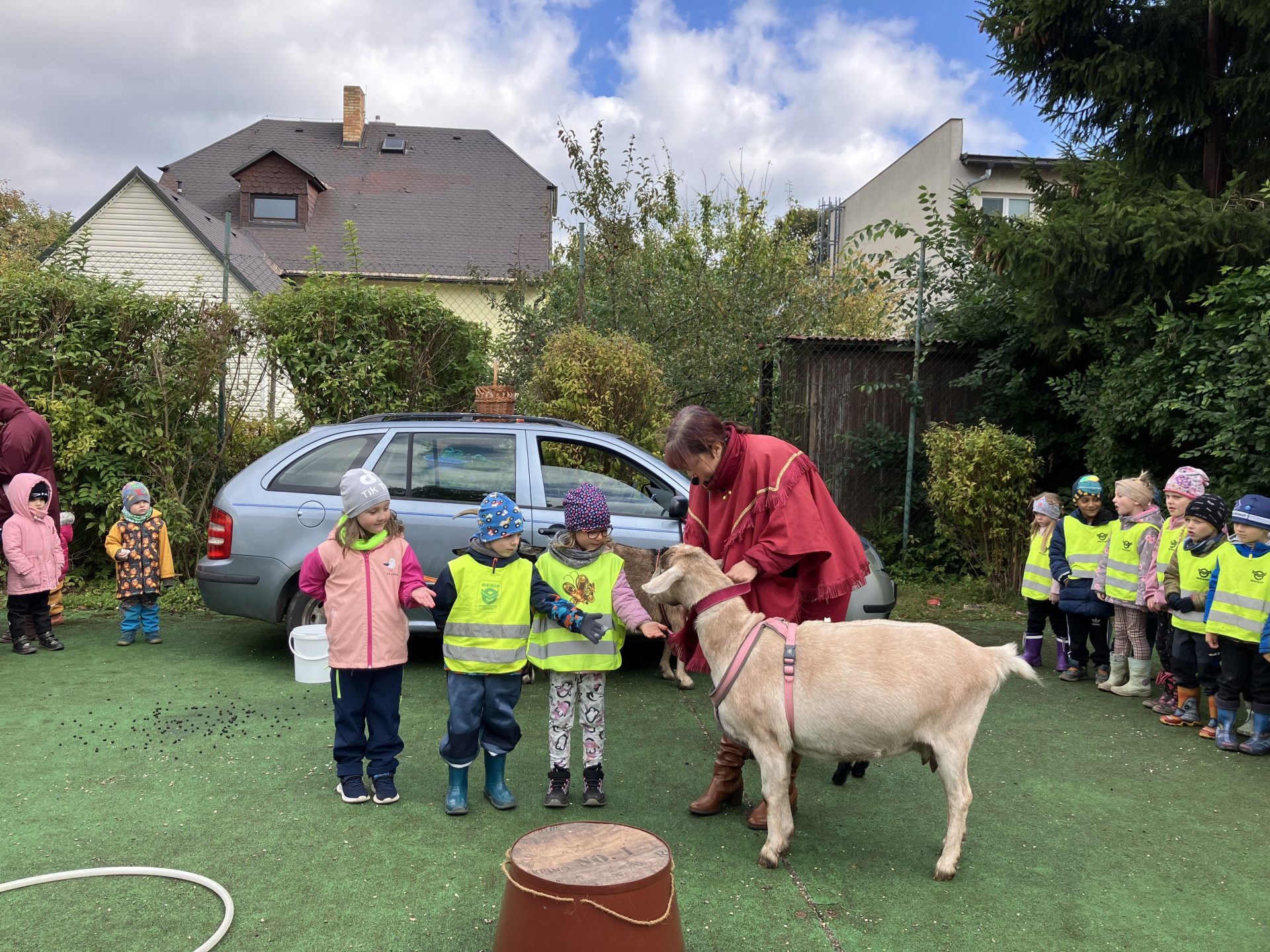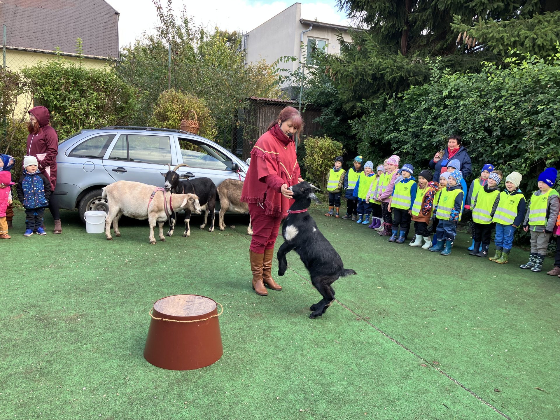 V tomto týdnu na zahrady mateřských škol zavítala zajímavá návštěva až od Uherského Hradiště. Z auta vystoupily čtyři kozy domácí: Julinka, která v roce 2013 zvítězila v soutěži Miss koza, Elenka, Reginka a nejmladší Zuzanka. Kozy jsou zcela socializované, jejich výcvik se podobá dogdancingu – tanci se psem.