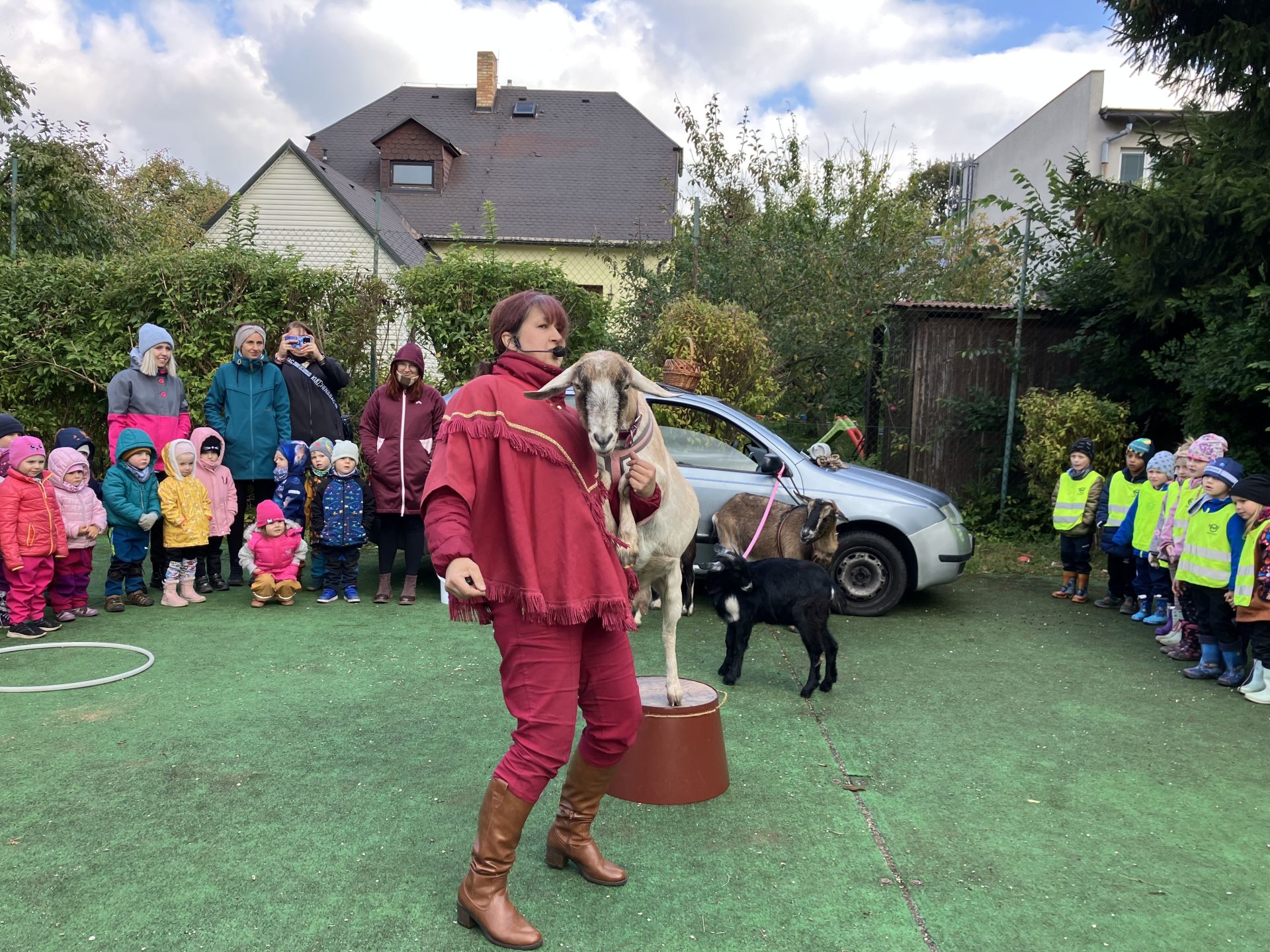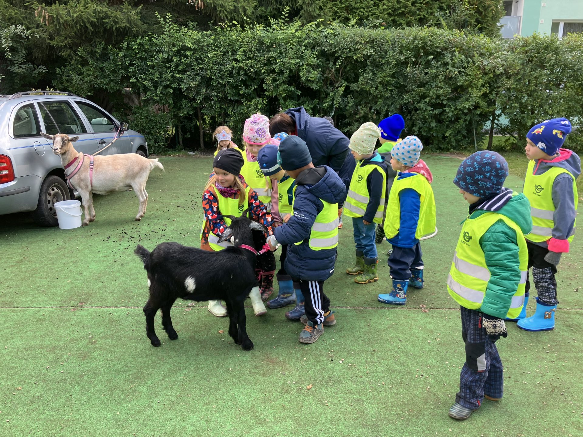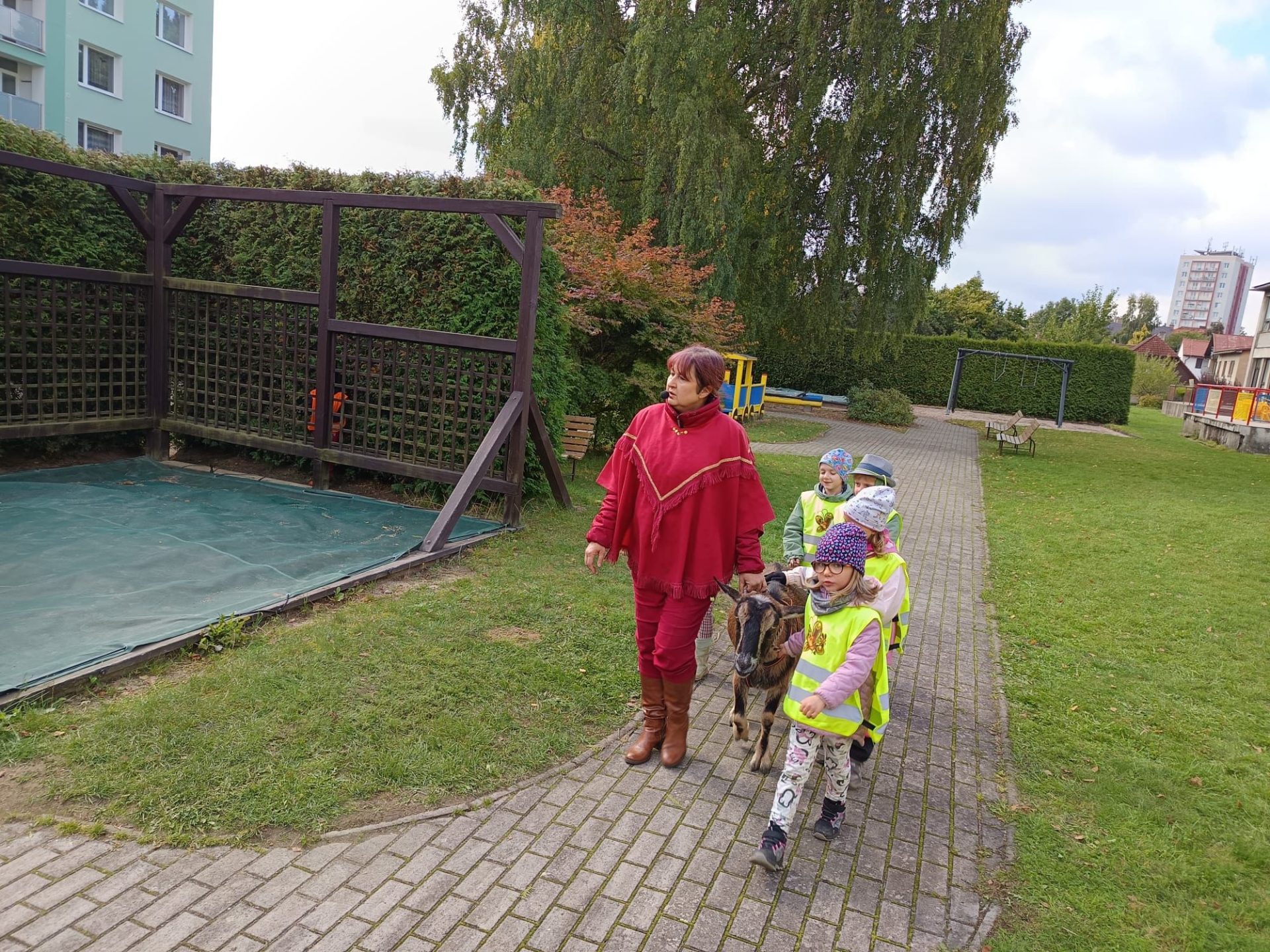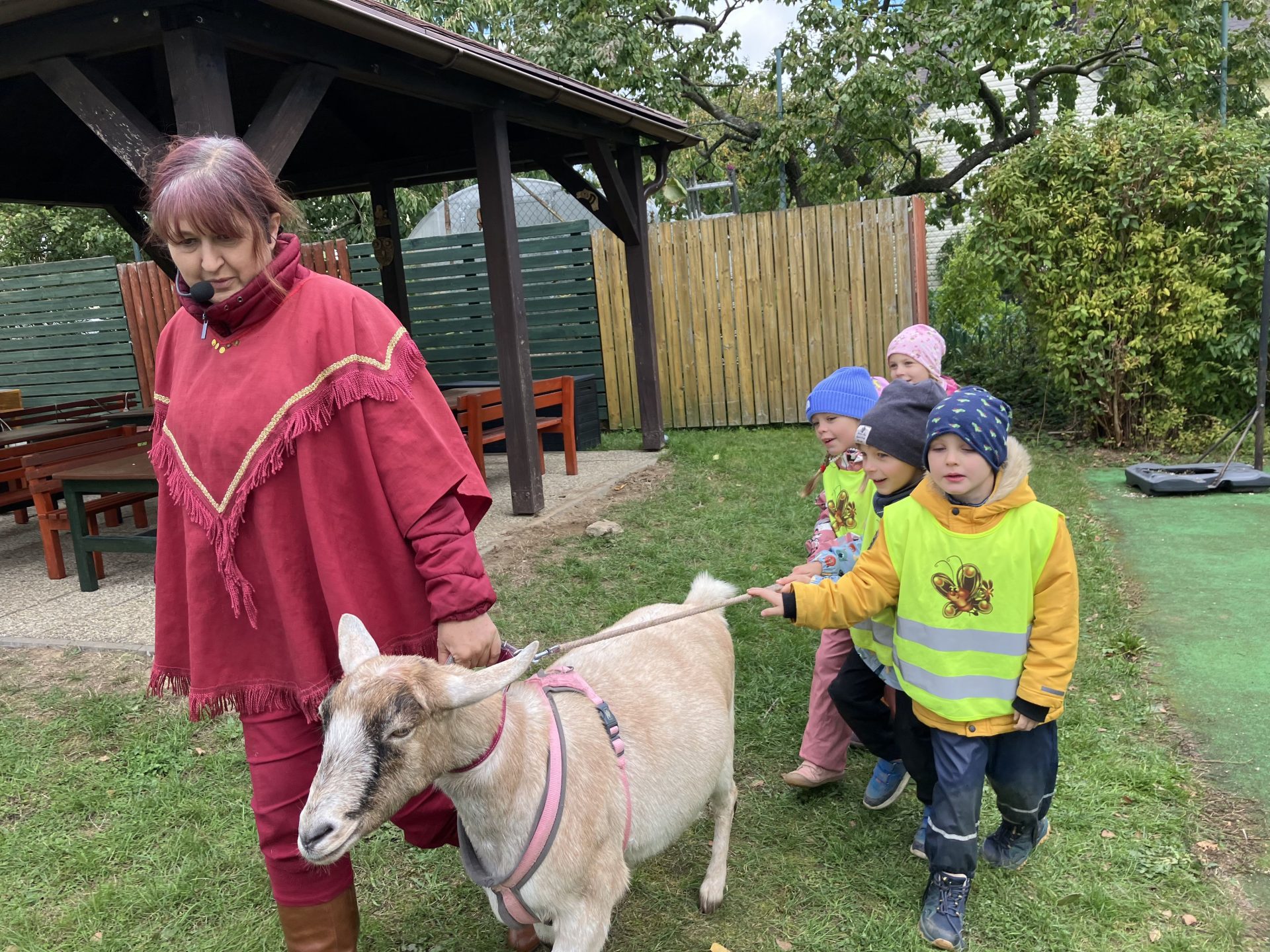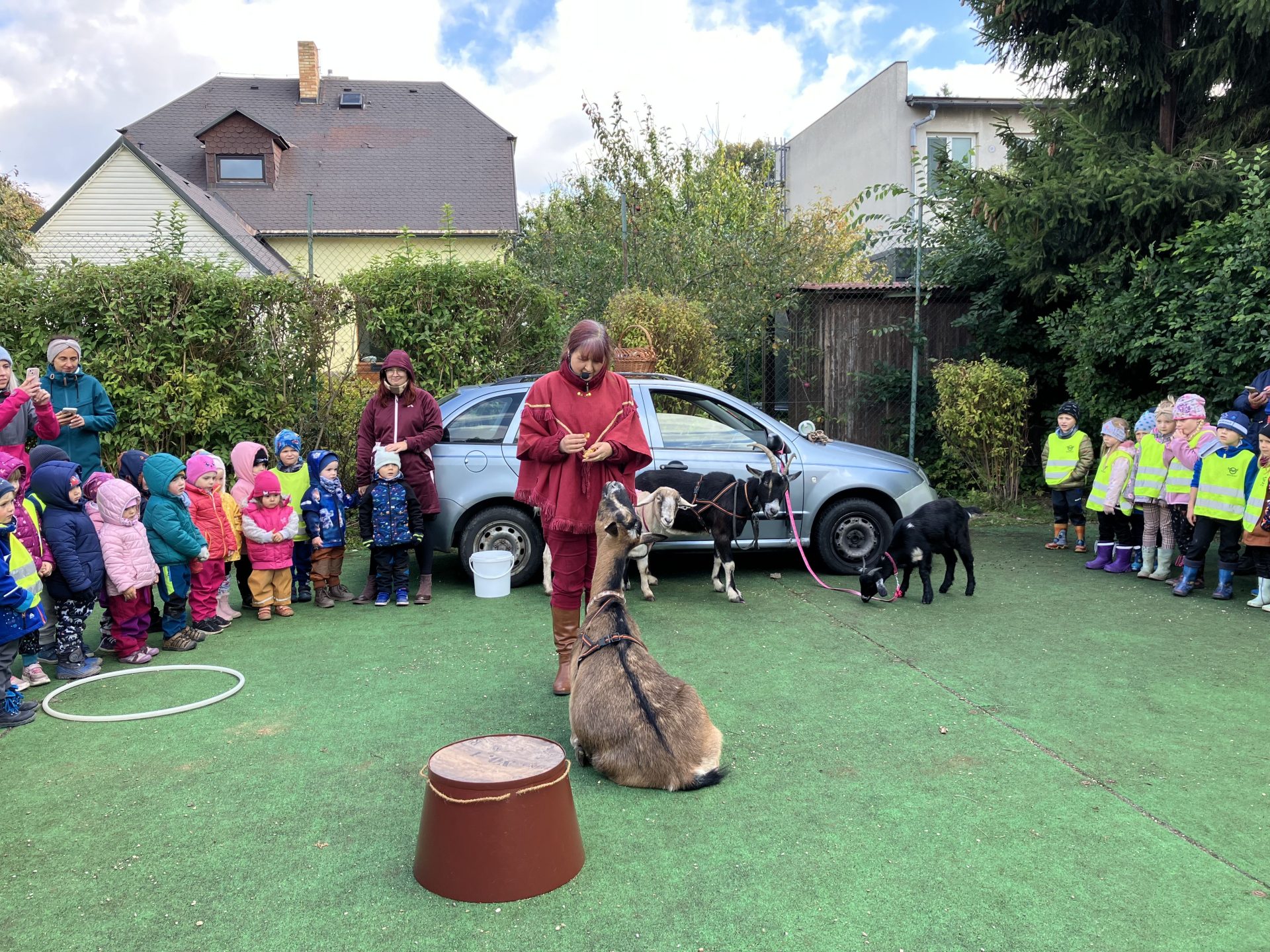 V tomto týdnu na zahrady mateřských škol zavítala zajímavá návštěva až od Uherského Hradiště. Z auta vystoupily čtyři kozy domácí: Julinka, která v roce 2013 zvítězila v soutěži Miss koza, Elenka, Reginka a nejmladší Zuzanka. Kozy jsou zcela socializované, jejich výcvik se podobá dogdancingu – tanci se psem.