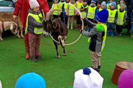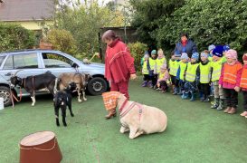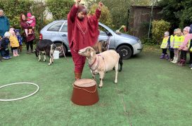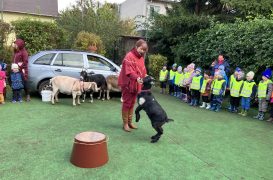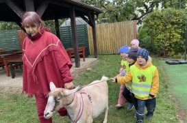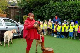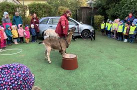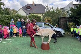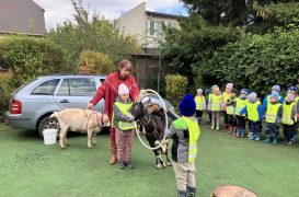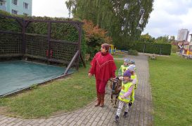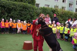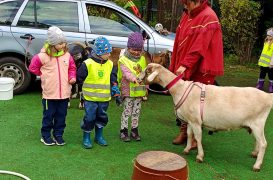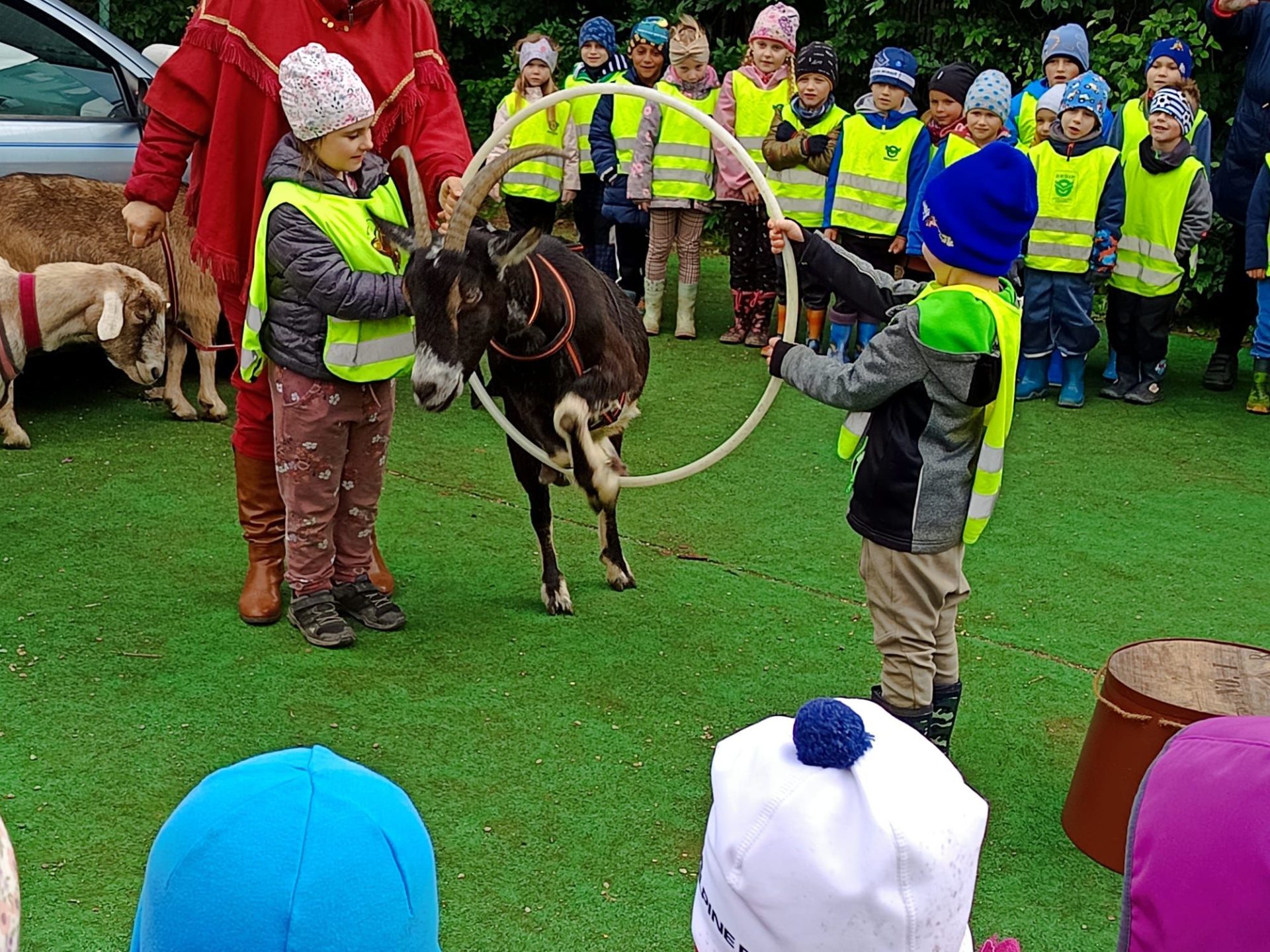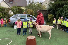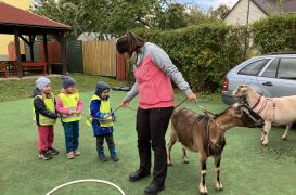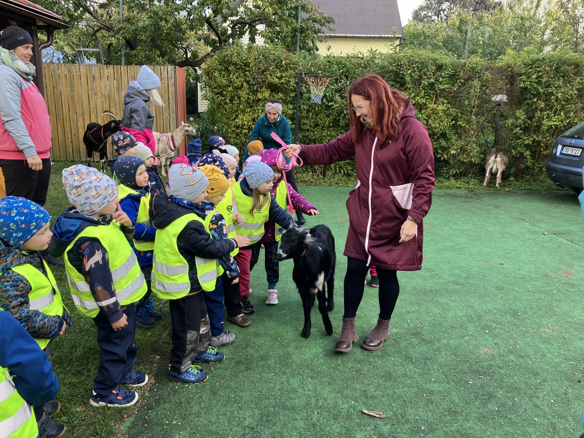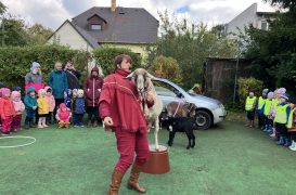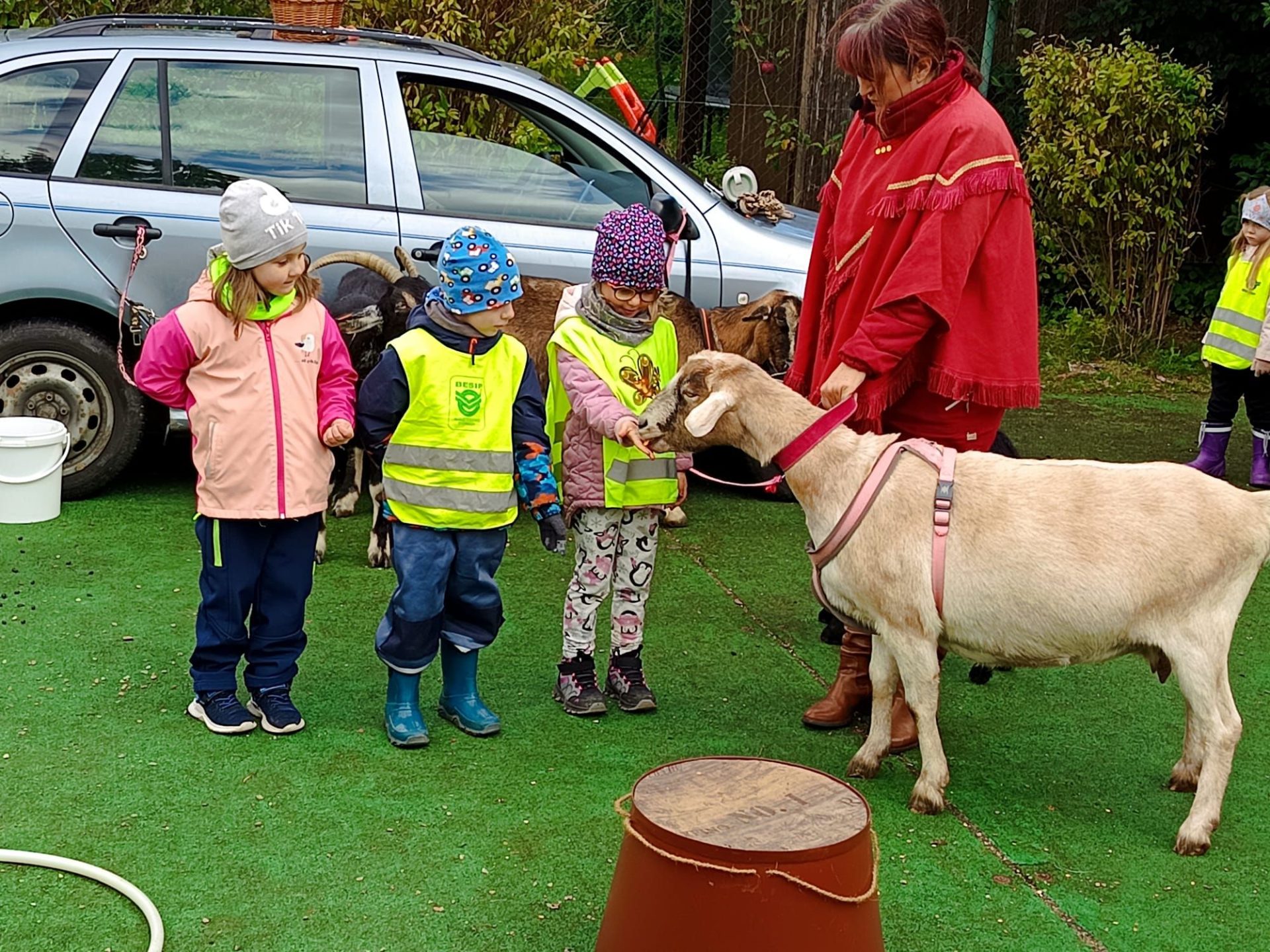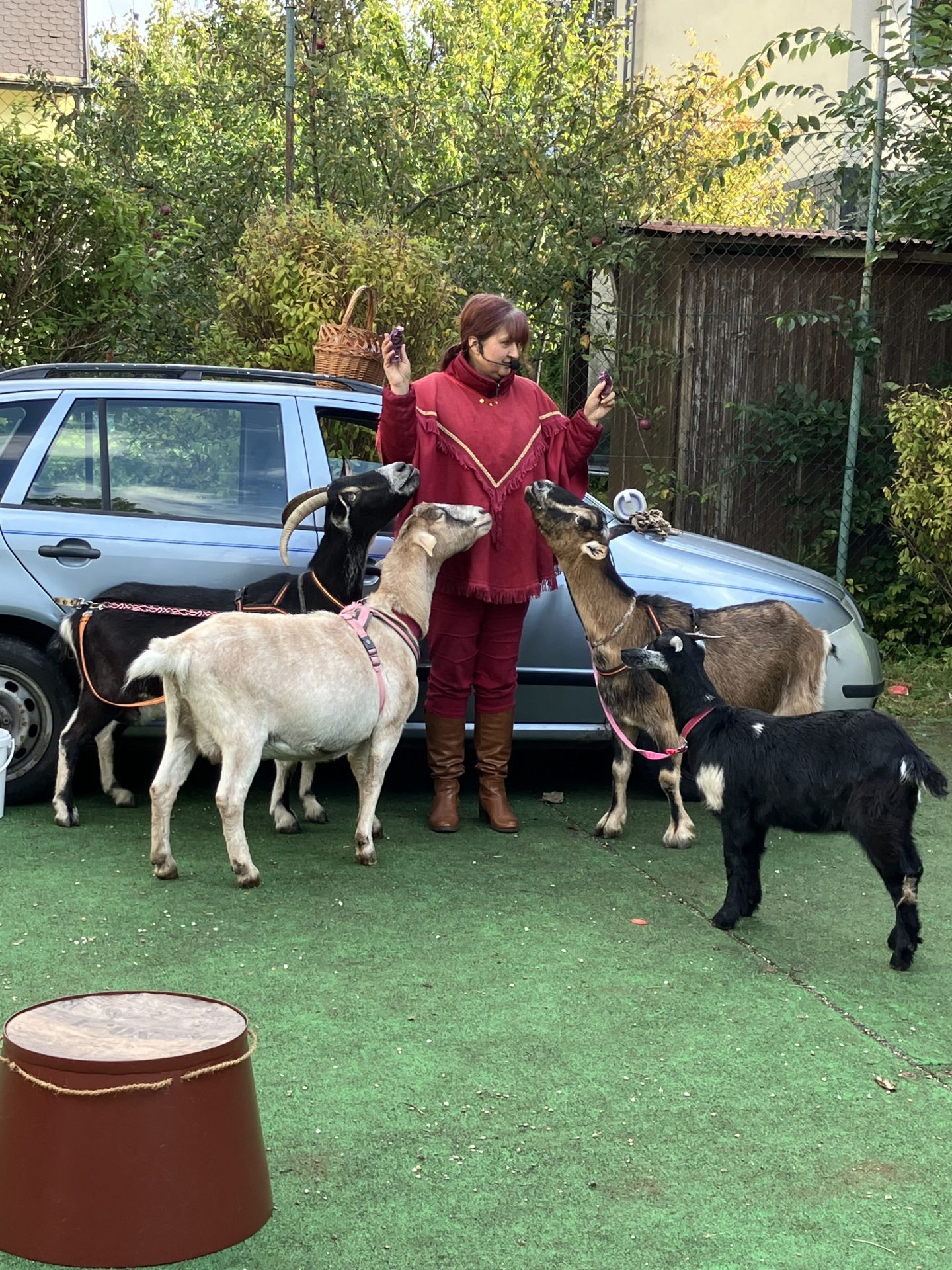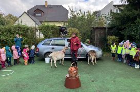 V tomto týdnu na zahrady mateřských škol zavítala zajímavá návštěva až od Uherského Hradiště. Z auta vystoupily čtyři kozy domácí: Julinka, která v roce 2013 zvítězila v soutěži Miss koza, Elenka, Reginka a nejmladší Zuzanka. Kozy jsou zcela socializované, jejich výcvik se podobá dogdancingu – tanci se psem.