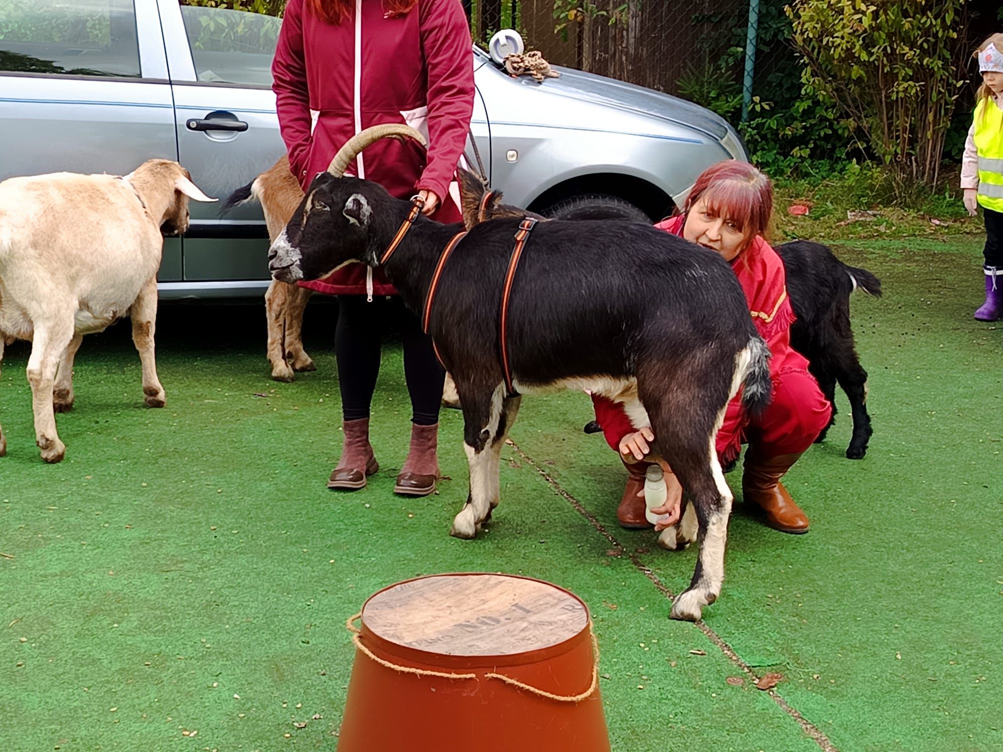 Program byl složený z edukativní a zážitkové části. Nejprve byla děti seznámeny s tím, jak kozy žijí, čím se živí a viděly ukázku dojení. Následující interaktivní část byla velkým zážitkem. Kozy tančily a plnily pokyny paní chovatelky. Děti si vyzkoušely procházku s kozou po zahradě, krmily a hlavně hladily.