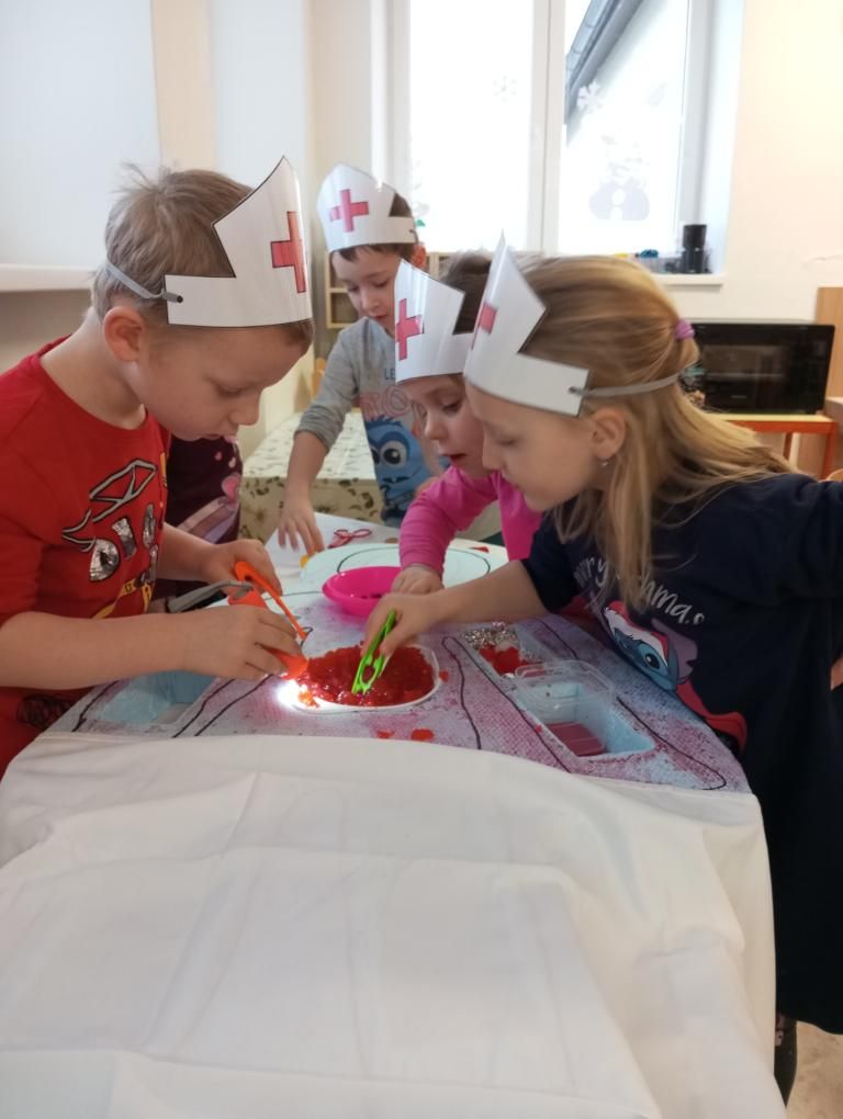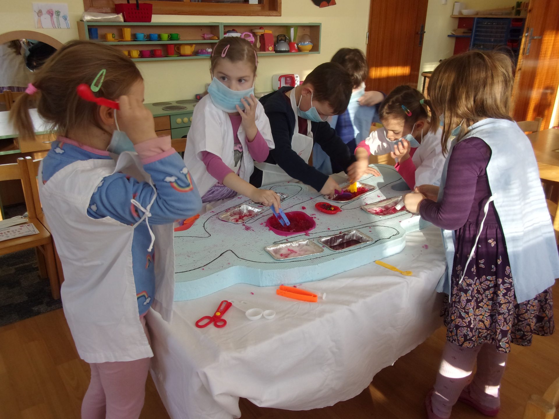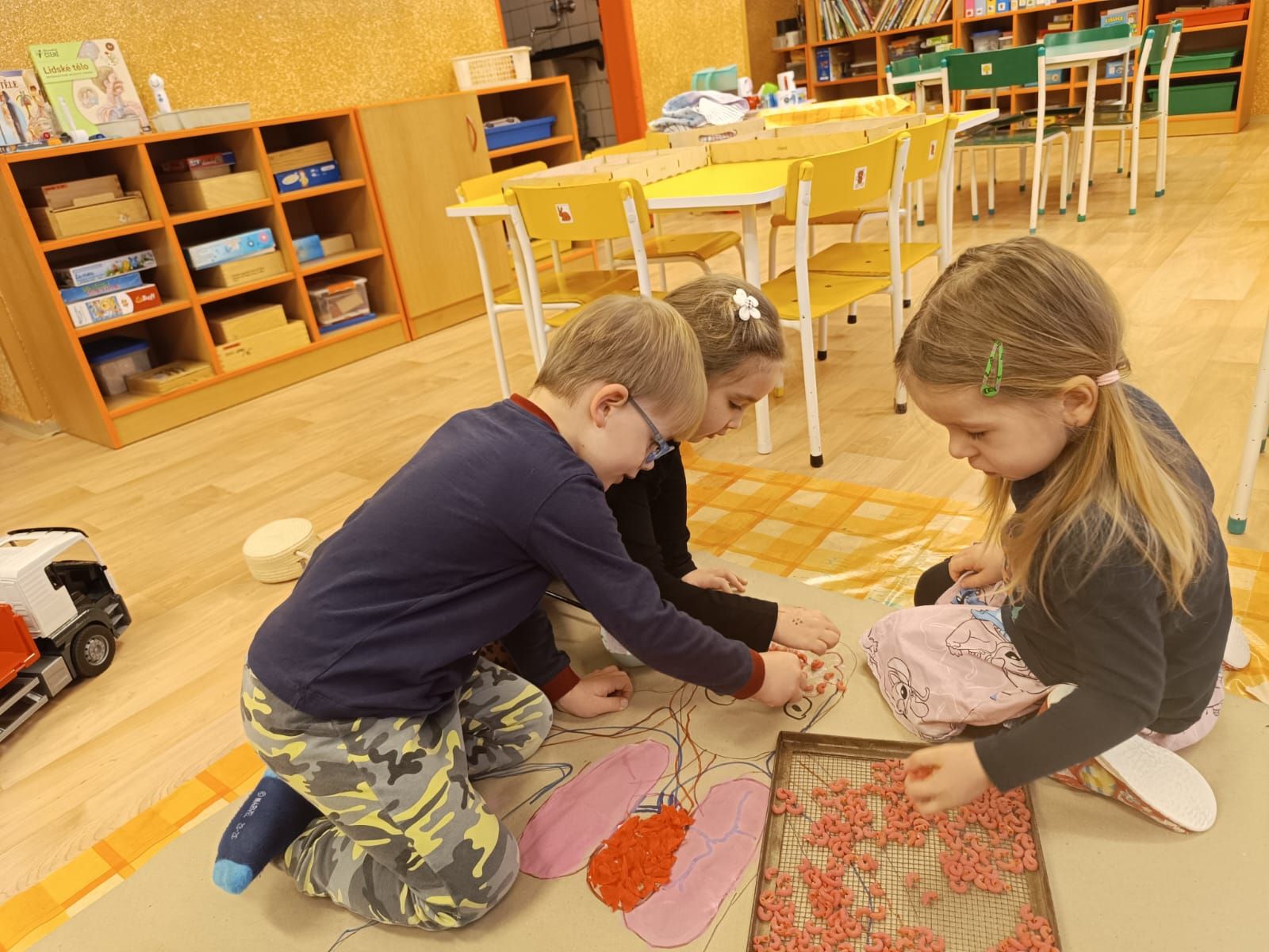 Děti z naší mateřské školy se vydaly na cestu za poznáním lidského těla, zdraví a nemocí. Hravou formou se seznamovaly s tím, jak tělo funguje, proč je důležitá hygiena a jak pečovat o své zdraví. Využívali jsme pestré aktivity – smyslové hraní (sensory play), výtvarné tvoření, pohybové hry i tematické činnosti, díky kterým děti zapojily všechny smysly a učily se přirozeně skrze zážitek. Celé téma děti velmi zaujalo a odnesly si nejen nové znalosti, ale i radost z objevování.