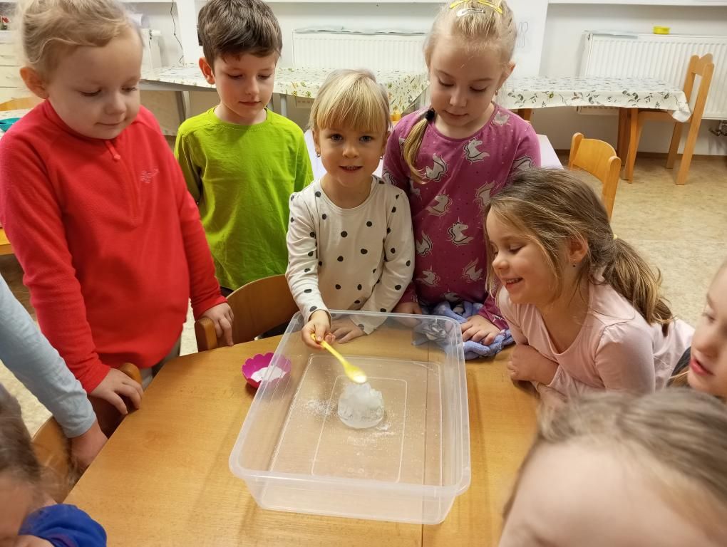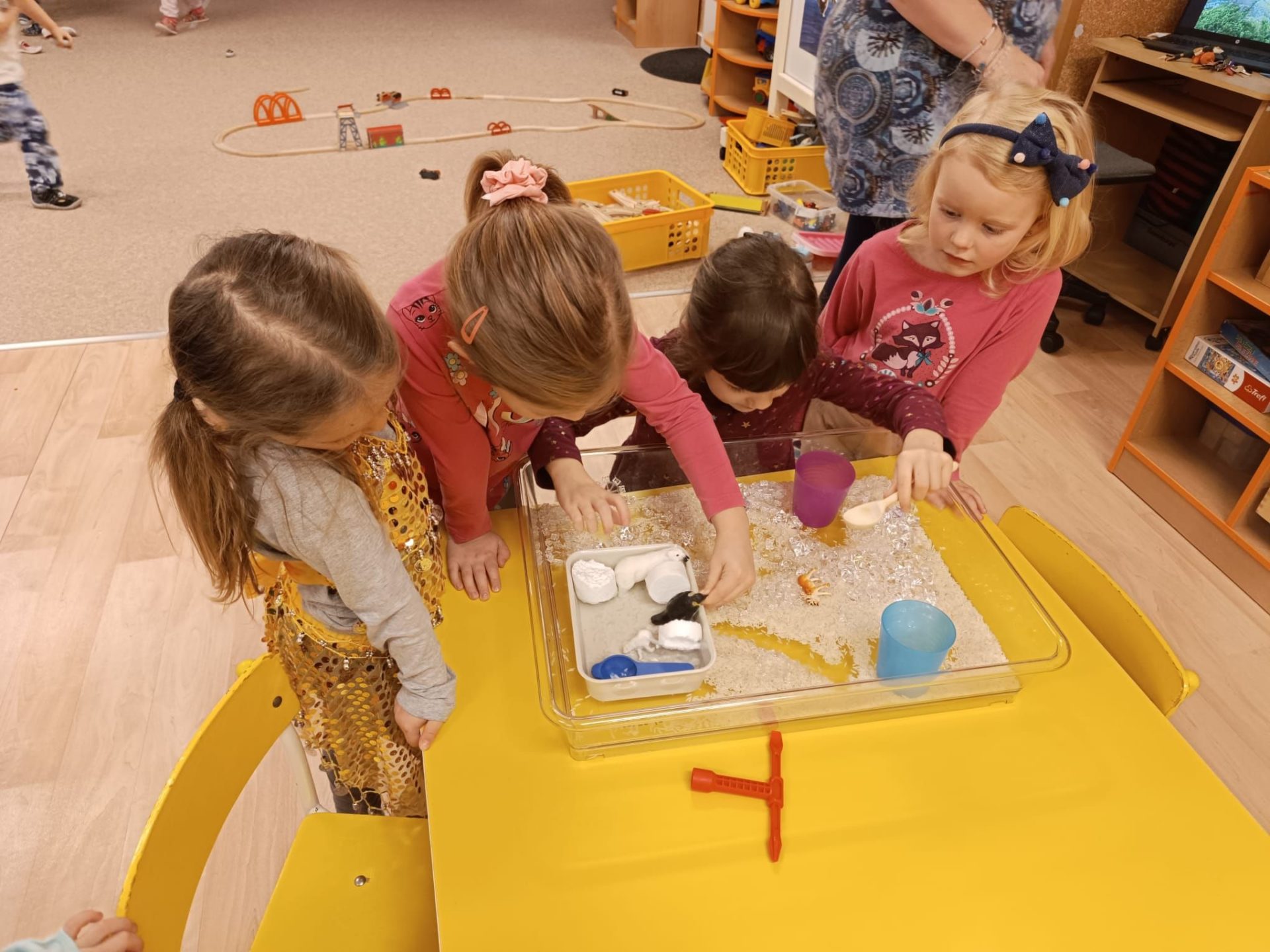 Děti se seznamují s ledem a sněhem nejen teoreticky, ale především prostřednictvím jednoduchých a hravých pokusů. Pokusem polární záře či rozmrazováním ledu podporujeme v dětech jejich zvídavost, schopnost pozorování i první poznatky o přírodních jevech. Společně děti poznávají znaky polárních oblastí, jako jsou iglú, život Eskymáků či polární zvířata. Nechybí ani zkoumání přírody, kde sníh a led doslova čarují. Toto téma rozvíjí dětské poznání, podporuje vztah k přírodě a učí děti vnímat svět kolem sebe s otevřenýma očima. Polární oblasti se tak nestávají pouze zajímavým tématem, ale dobrodružstvím plným objevování.