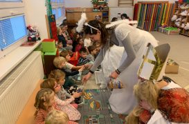 Mikuláš se svým doprovodem postupně navštívil všechna pracoviště naší mateřské školy a rozdával radost, úsměvy i malé nadílky. Tento den se stal pro děti krásným zážitkem a příjemným zahájením adventního času.
