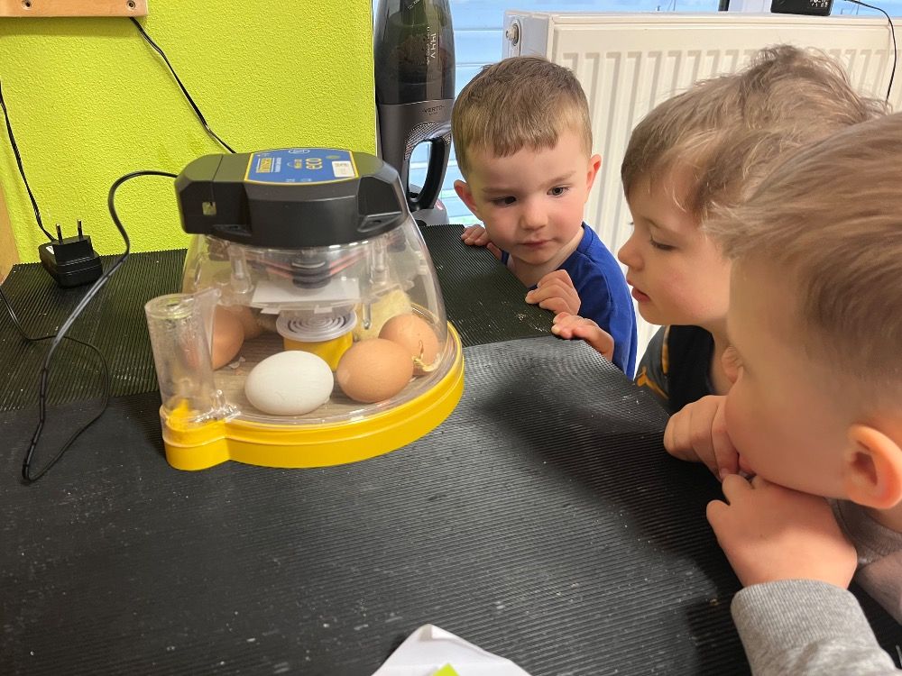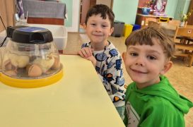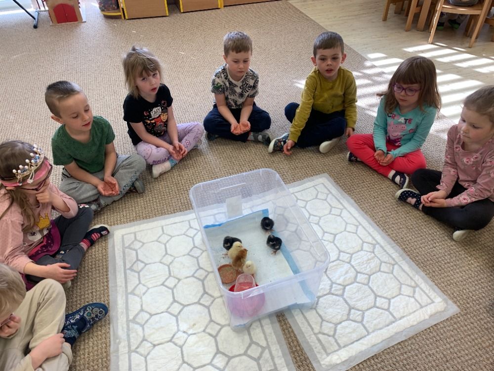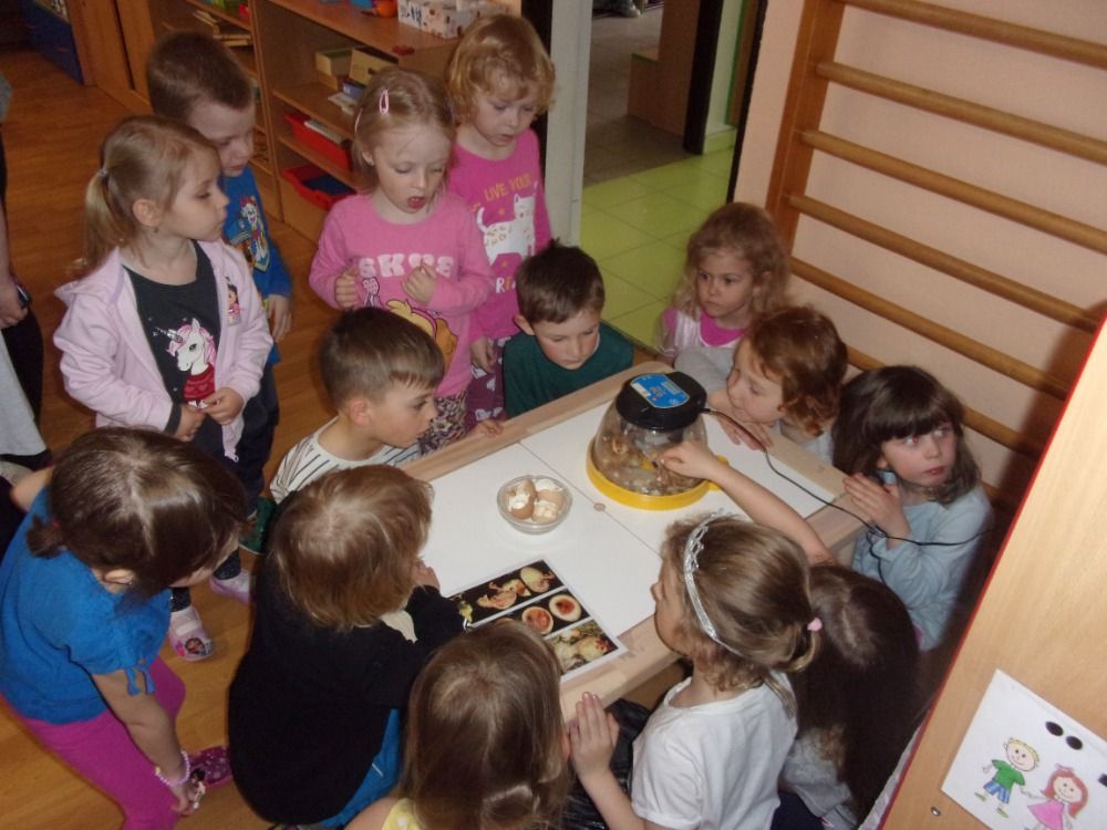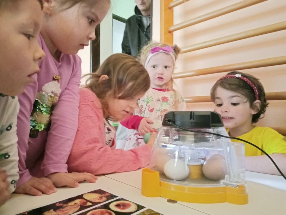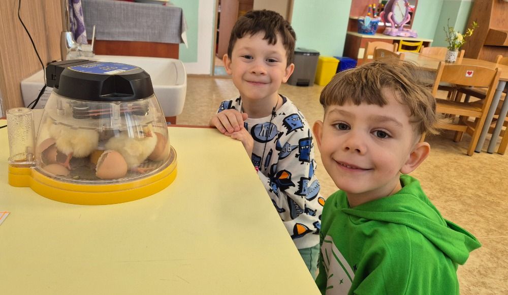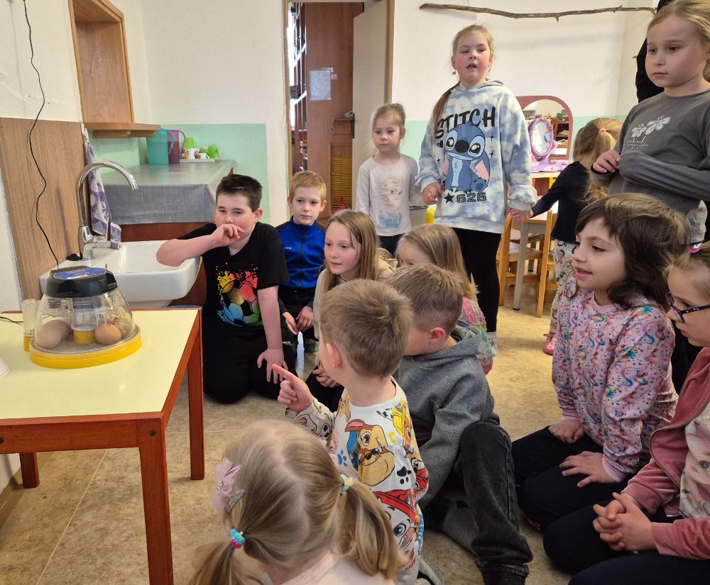 Děti s velkým nadšením sledovaly první praskliny na skořápkách i okamžiky, kdy se kuřátka poprvé podívala na svět. Získaly představu o tom, jak vypadají po vylíhnutí, jak se pohybují a jaké vydávají zvuky. Uvědomily si, že mláďata jsou křehká a potřebují péči, teplo a bezpečí.
