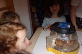 Naše mateřská škola zažila v polovině dubna jedinečný a nezapomenutelný projekt. V termínu od 13. – 17. 4. byly v mateřské škole na pracovištích Drobného, Žďárská, Slavkovice a Pohledec umístěny líhně kuřat, které dětem přiblížily zázrak vzniku nového života.