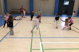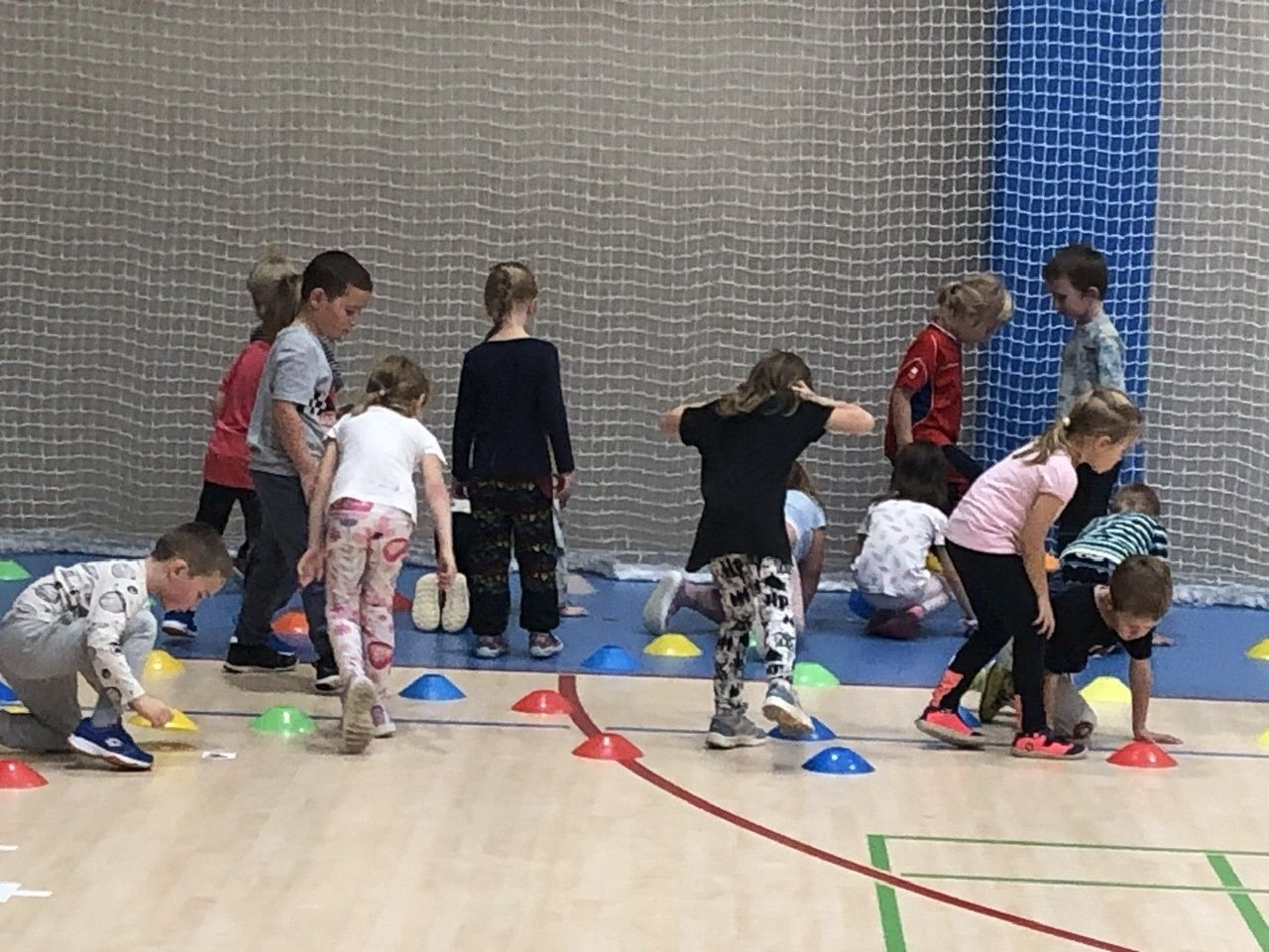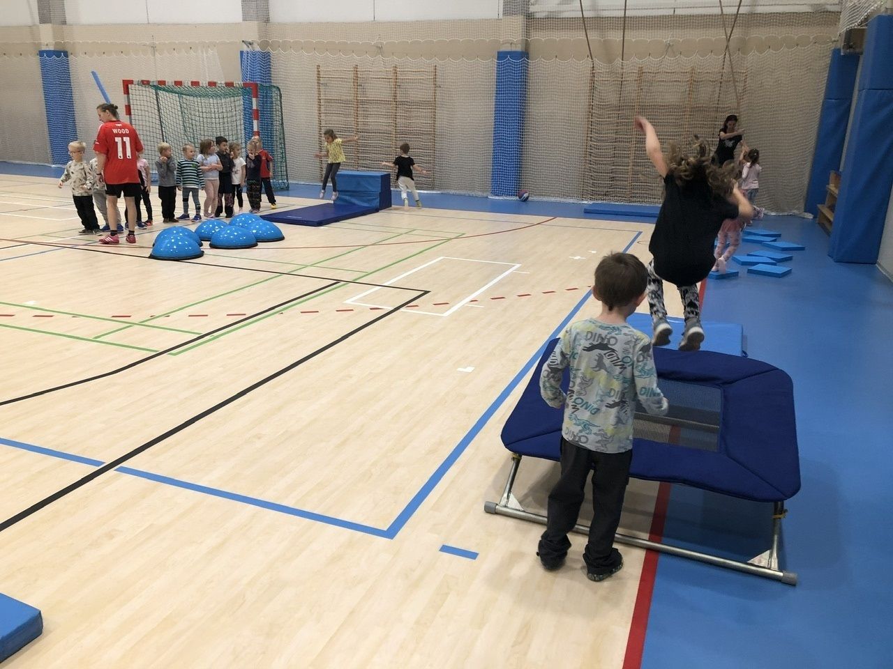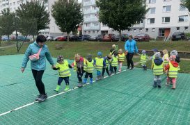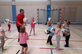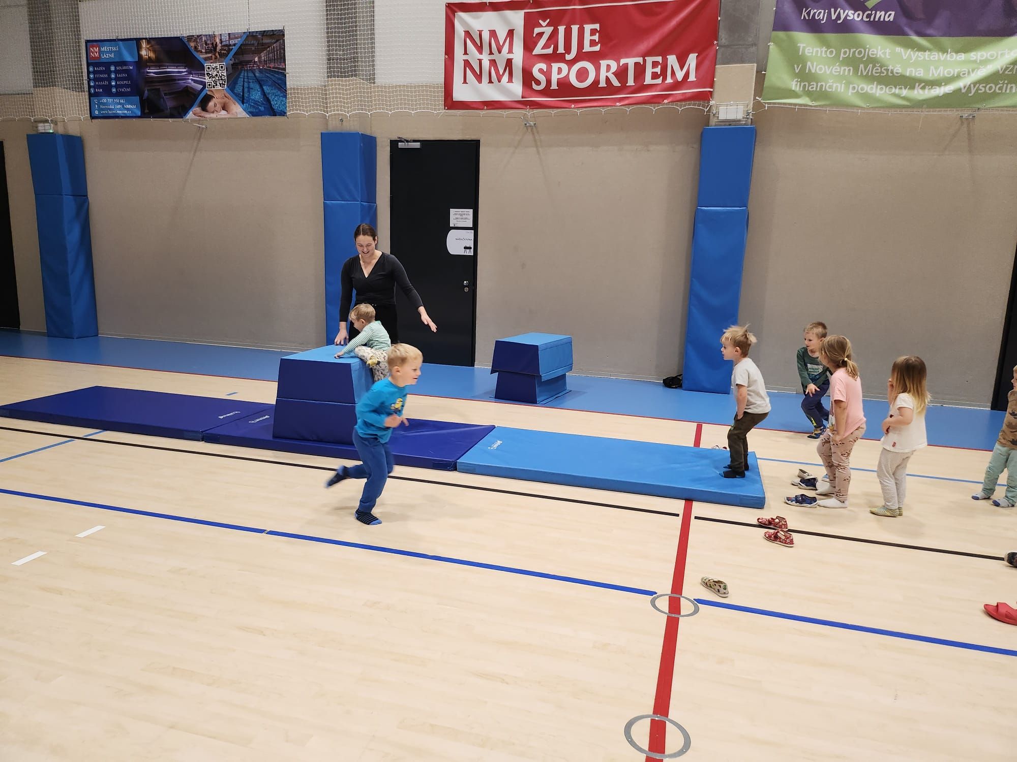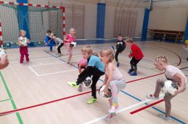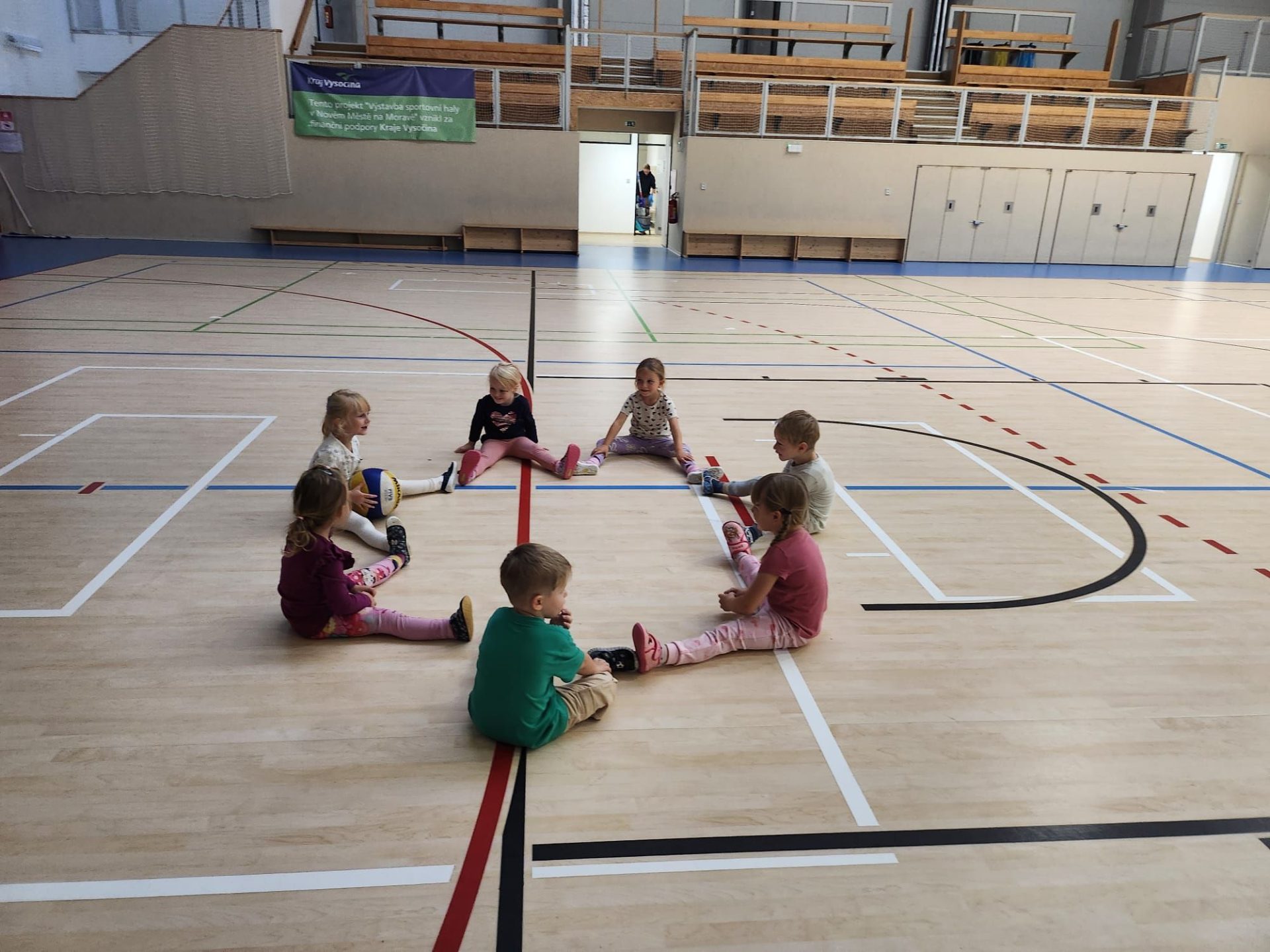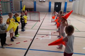 Cvičit do haly chodí děti moc rády. Často je tam čeká pan trenér Josef Chmelík nebo paní trenérka Šimková, kterým chceme moc poděkovat za jejich čas, který dětem věnují a perfektní hry, které s nimi hrají. Podporují jejich hbitost, cvičí jejich rychlé reakce i sportovní dovednosti s nejrůznějším sportovním náčiním. Ukazují dětem, jak je důležité táhnout za jeden provaz, pomáhat si a být kamarádi.