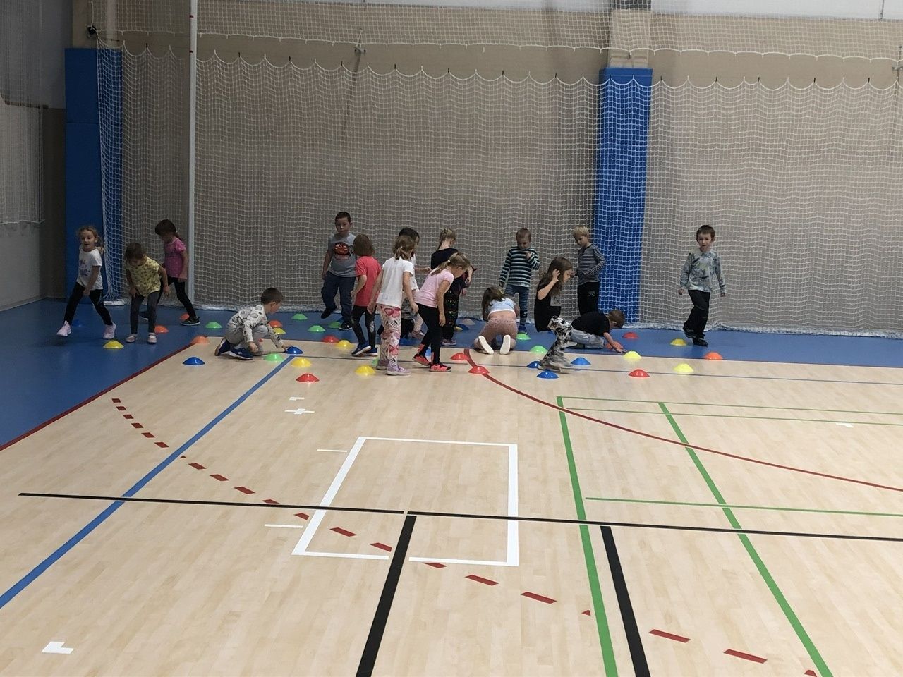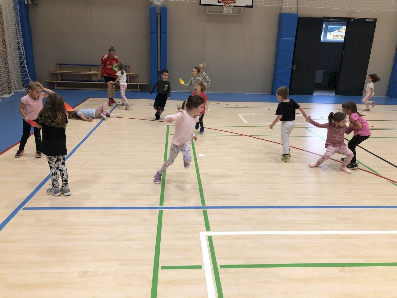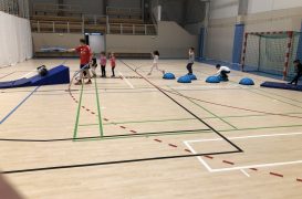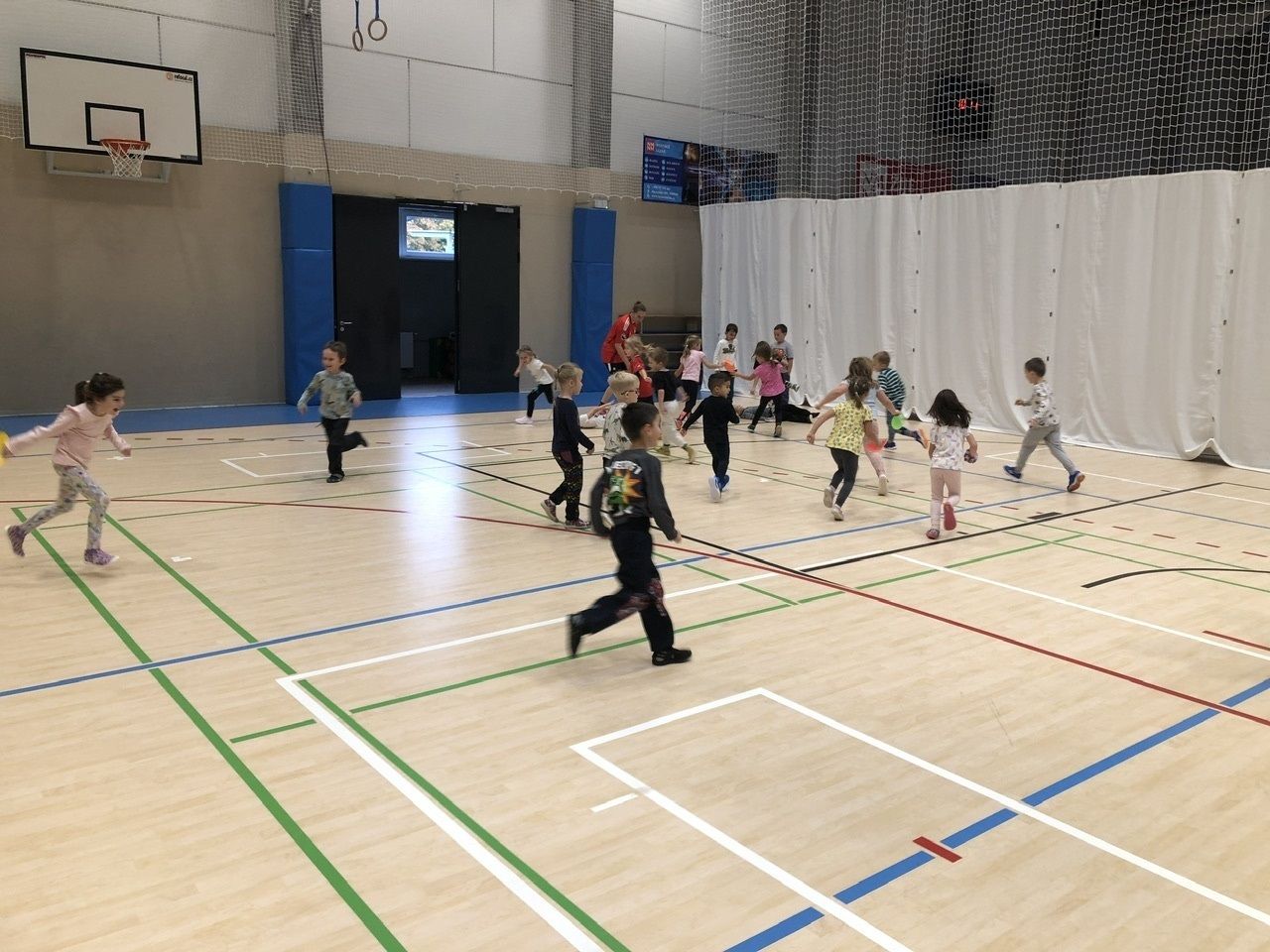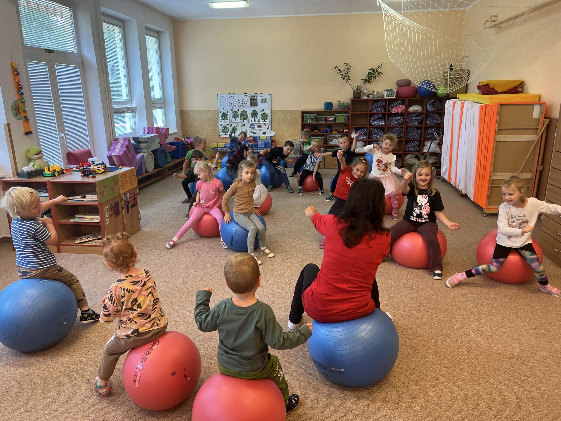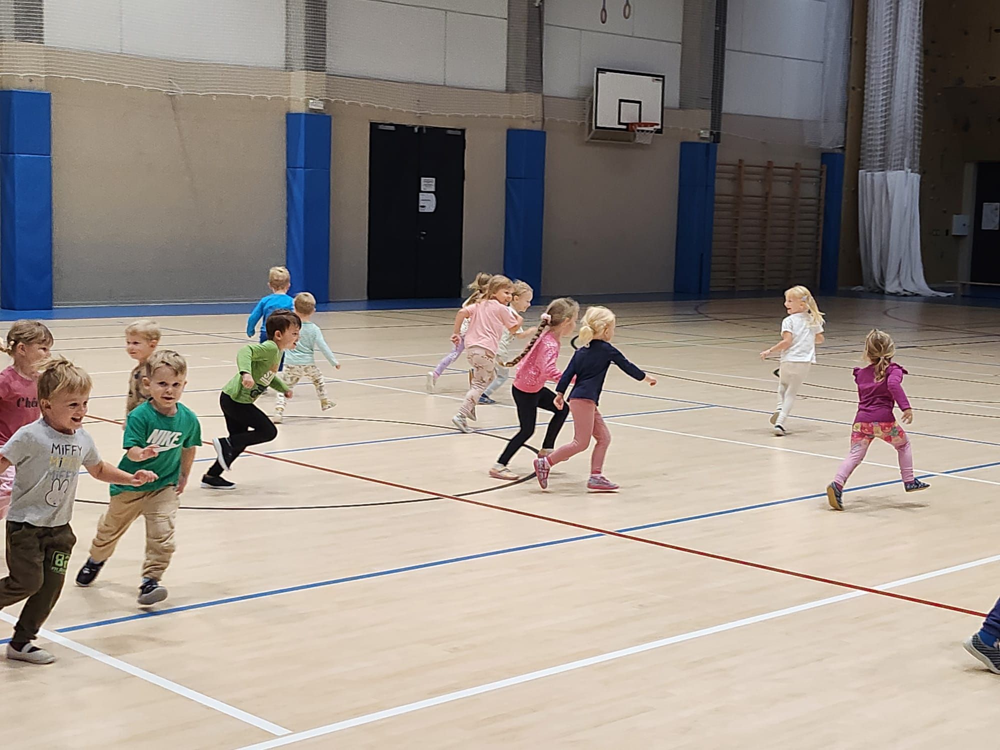 Cvičit do haly chodí děti moc rády. Často je tam čeká pan trenér Josef Chmelík nebo paní trenérka Šimková, kterým chceme moc poděkovat za jejich čas, který dětem věnují a perfektní hry, které s nimi hrají. Podporují jejich hbitost, cvičí jejich rychlé reakce i sportovní dovednosti s nejrůznějším sportovním náčiním. Ukazují dětem, jak je důležité táhnout za jeden provaz, pomáhat si a být kamarádi.