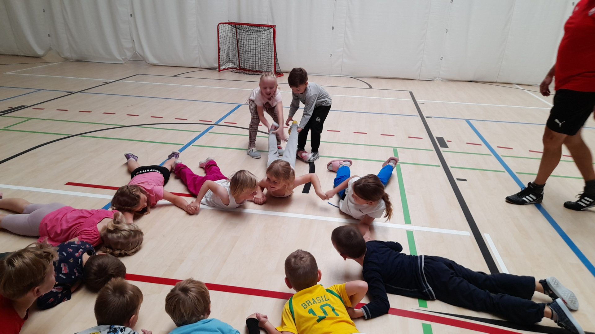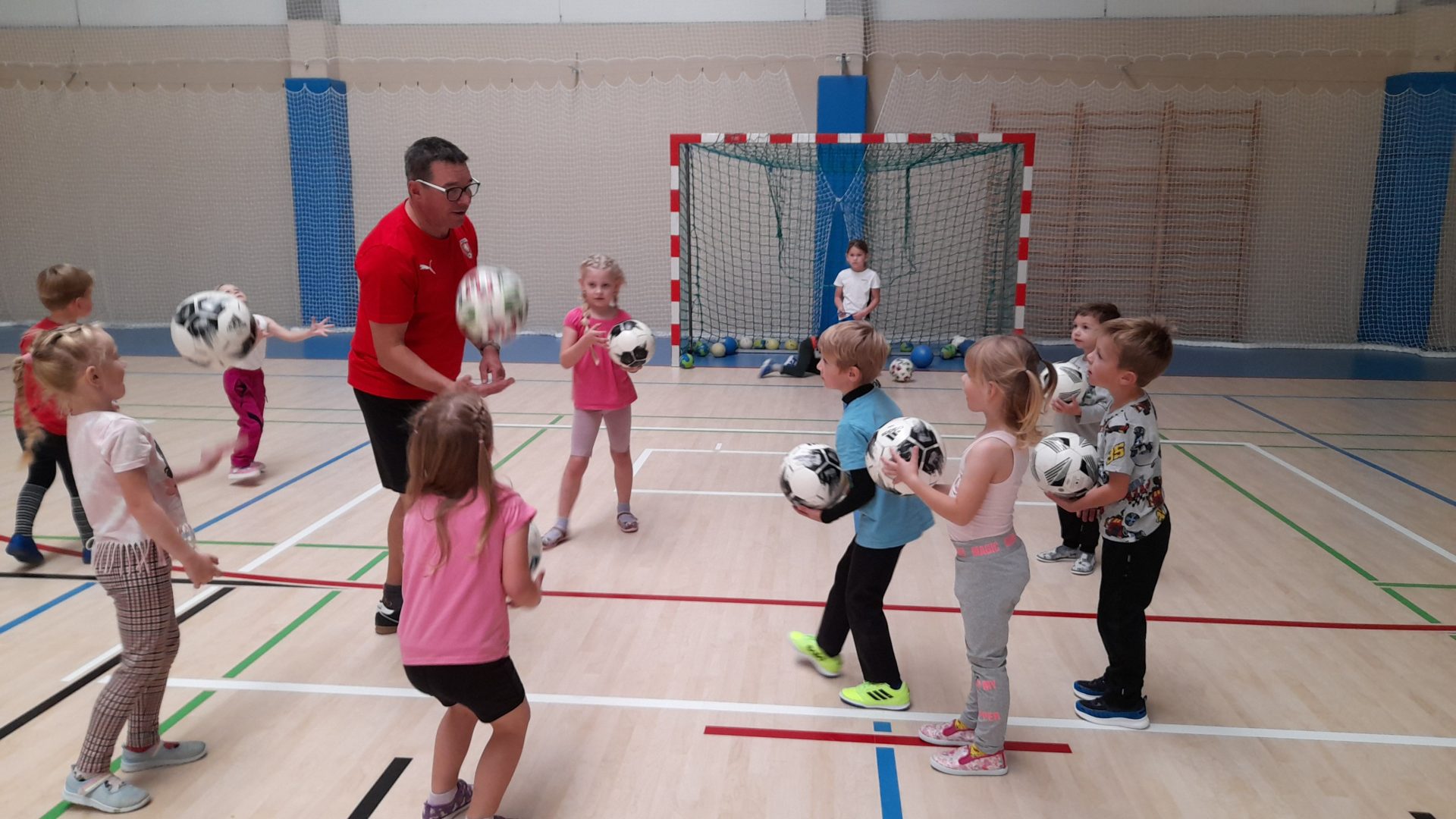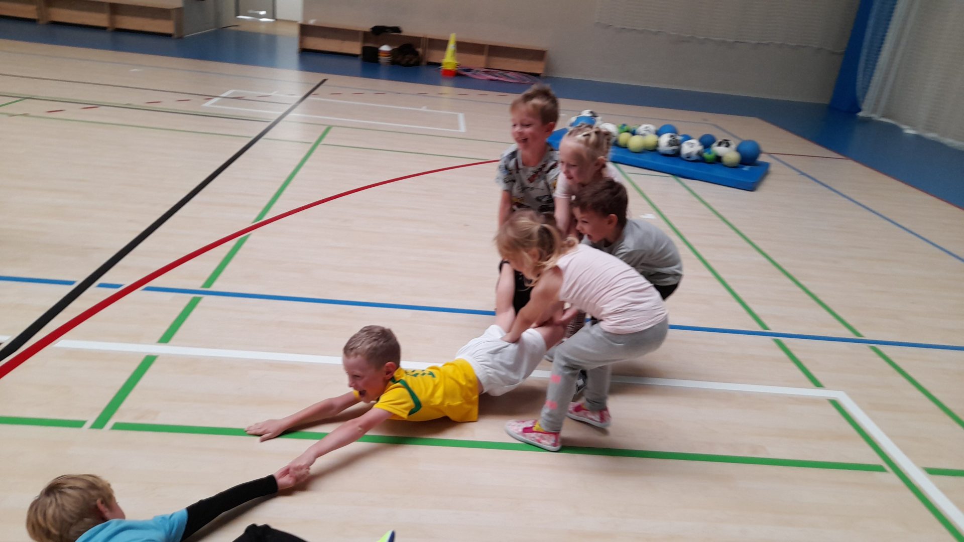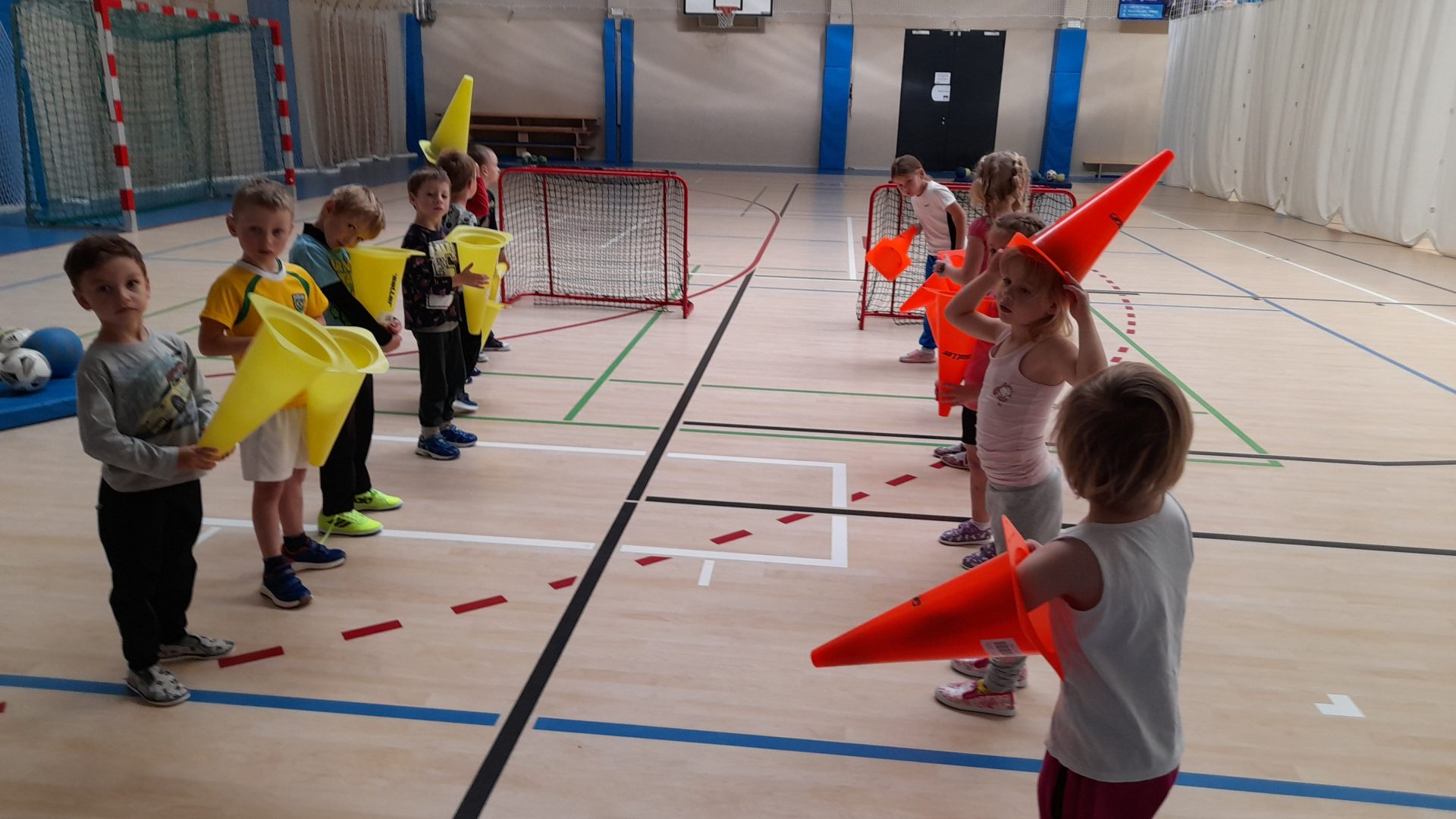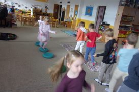 Cvičit do haly chodí děti moc rády. Často je tam čeká pan trenér Josef Chmelík nebo paní trenérka Šimková, kterým chceme moc poděkovat za jejich čas, který dětem věnují a perfektní hry, které s nimi hrají. Podporují jejich hbitost, cvičí jejich rychlé reakce i sportovní dovednosti s nejrůznějším sportovním náčiním. Ukazují dětem, jak je důležité táhnout za jeden provaz, pomáhat si a být kamarádi.