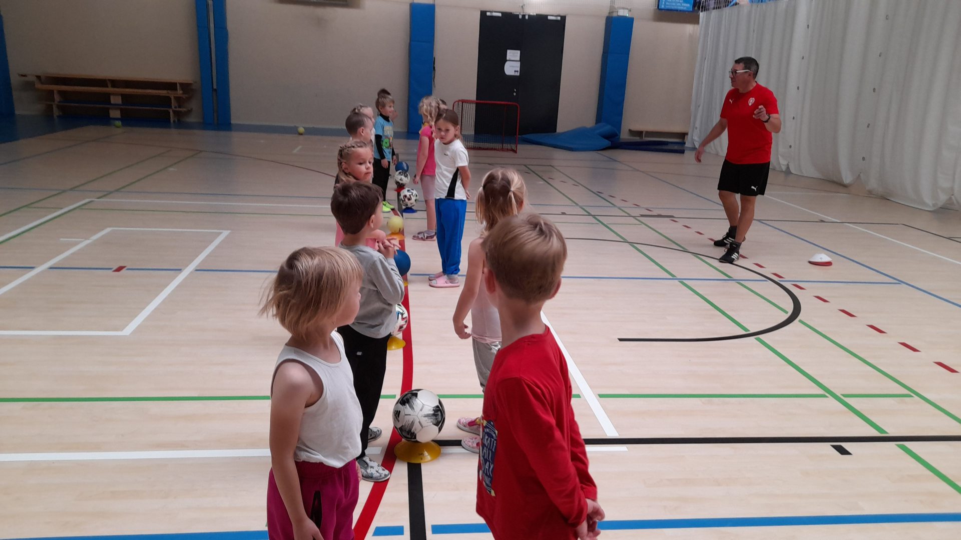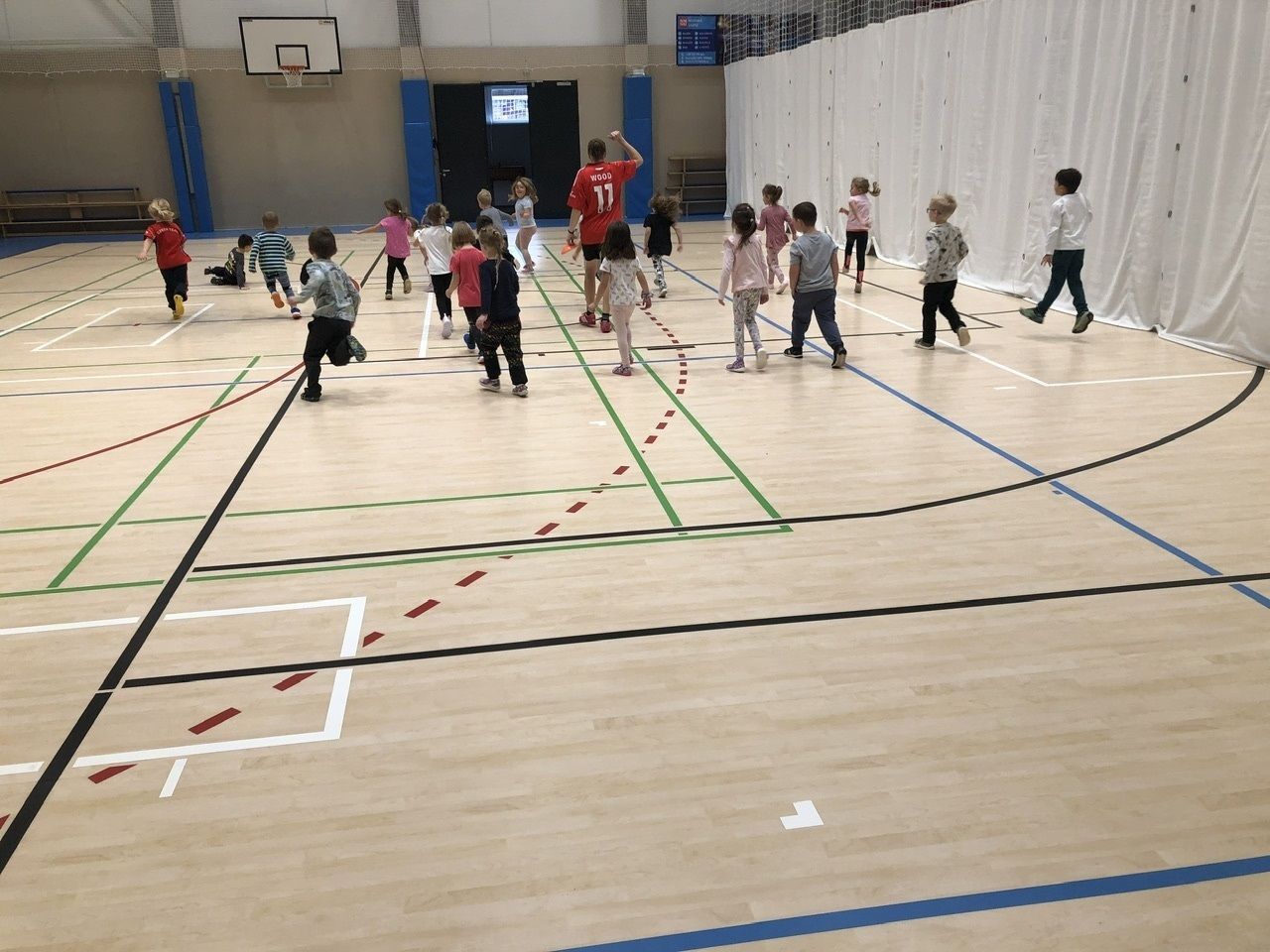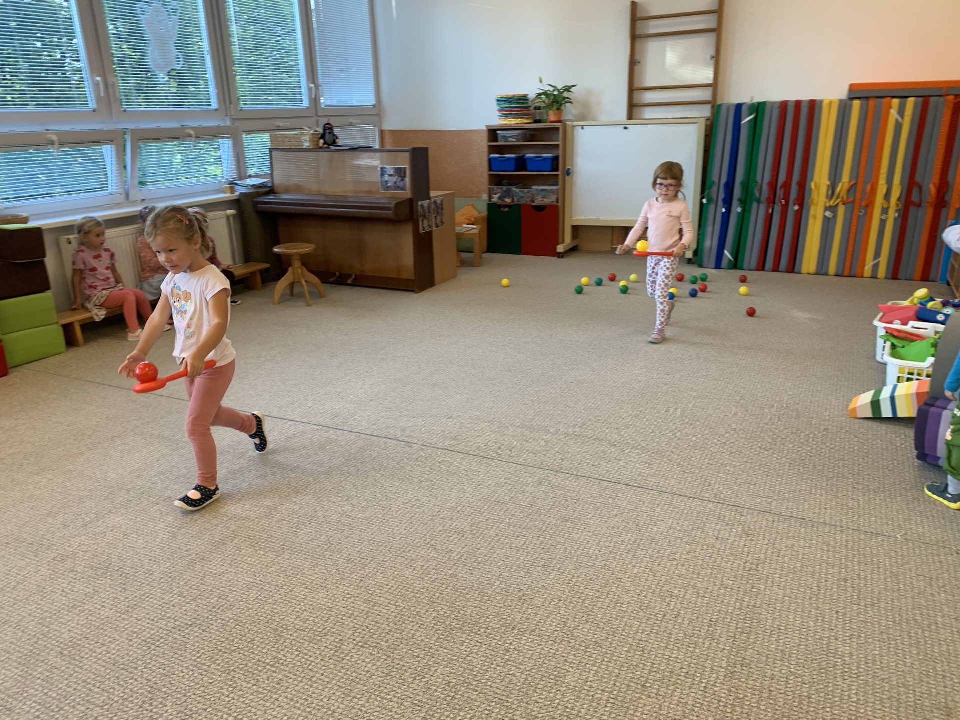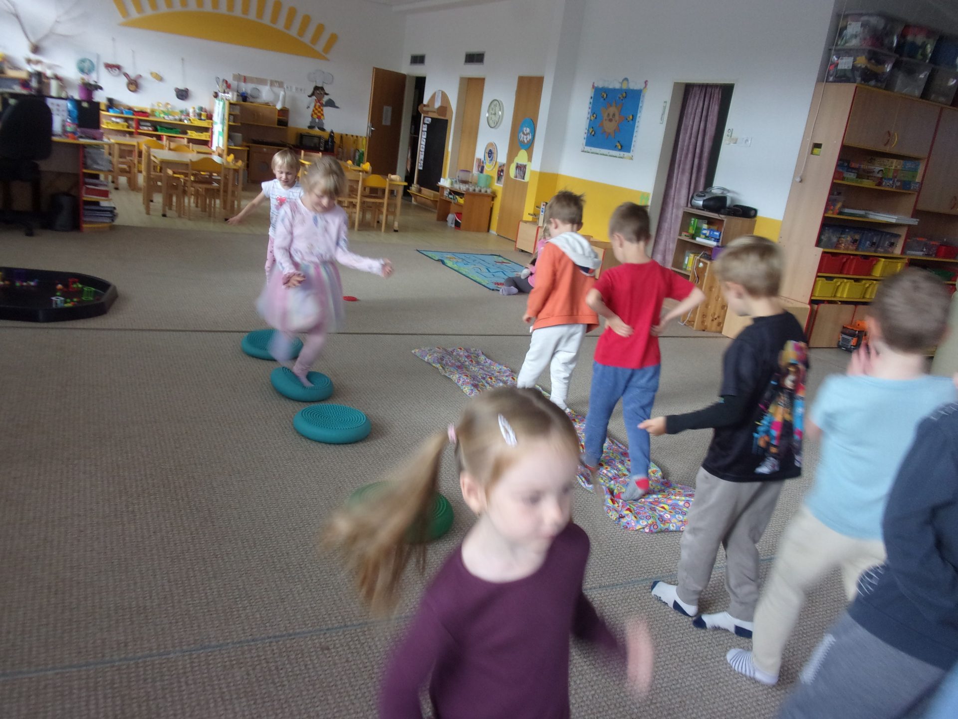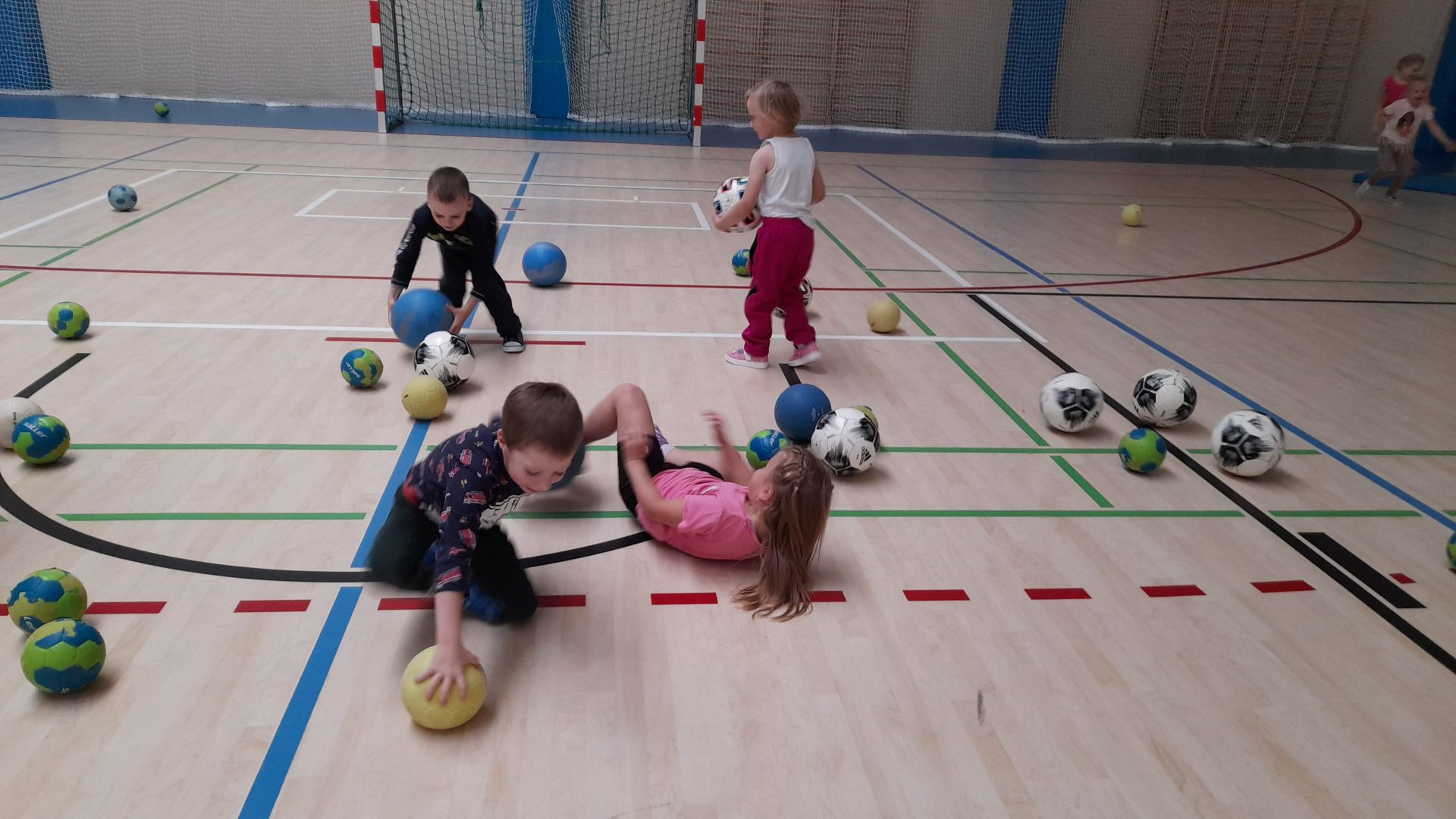 Cvičit do haly chodí děti moc rády. Často je tam čeká pan trenér Josef Chmelík nebo paní trenérka Šimková, kterým chceme moc poděkovat za jejich čas, který dětem věnují a perfektní hry, které s nimi hrají. Podporují jejich hbitost, cvičí jejich rychlé reakce i sportovní dovednosti s nejrůznějším sportovním náčiním. Ukazují dětem, jak je důležité táhnout za jeden provaz, pomáhat si a být kamarádi.