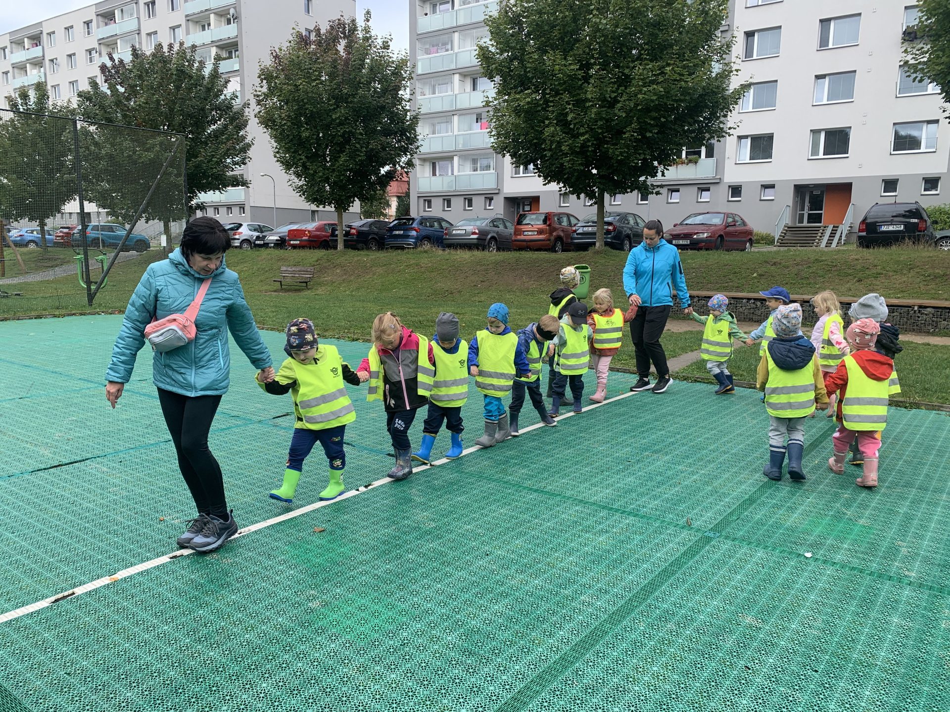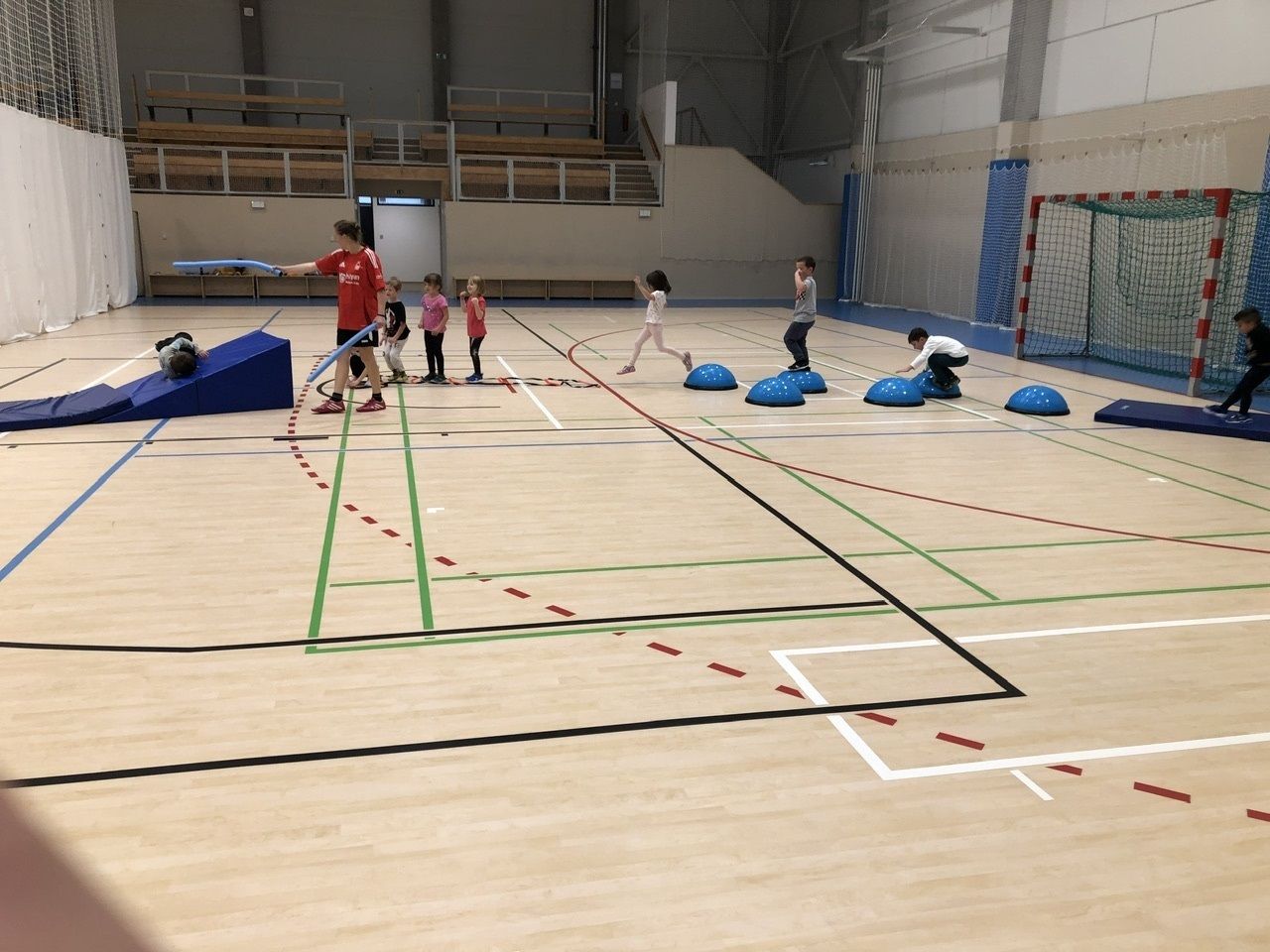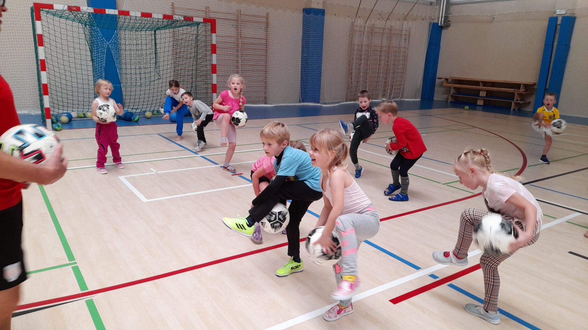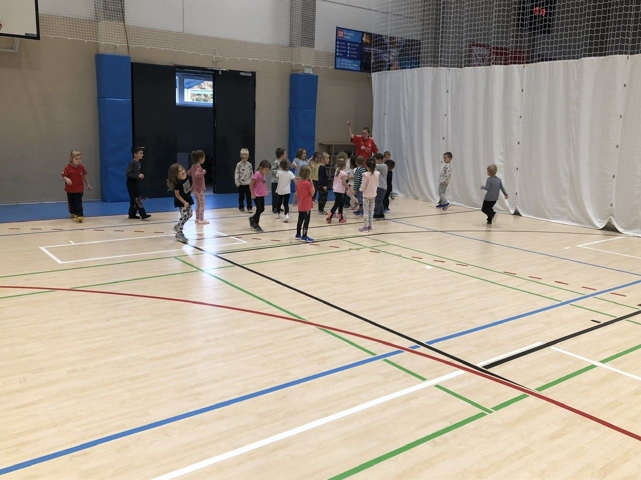 Cvičit do haly chodí děti moc rády. Často je tam čeká pan trenér Josef Chmelík nebo paní trenérka Šimková, kterým chceme moc poděkovat za jejich čas, který dětem věnují a perfektní hry, které s nimi hrají. Podporují jejich hbitost, cvičí jejich rychlé reakce i sportovní dovednosti s nejrůznějším sportovním náčiním. Ukazují dětem, jak je důležité táhnout za jeden provaz, pomáhat si a být kamarádi.