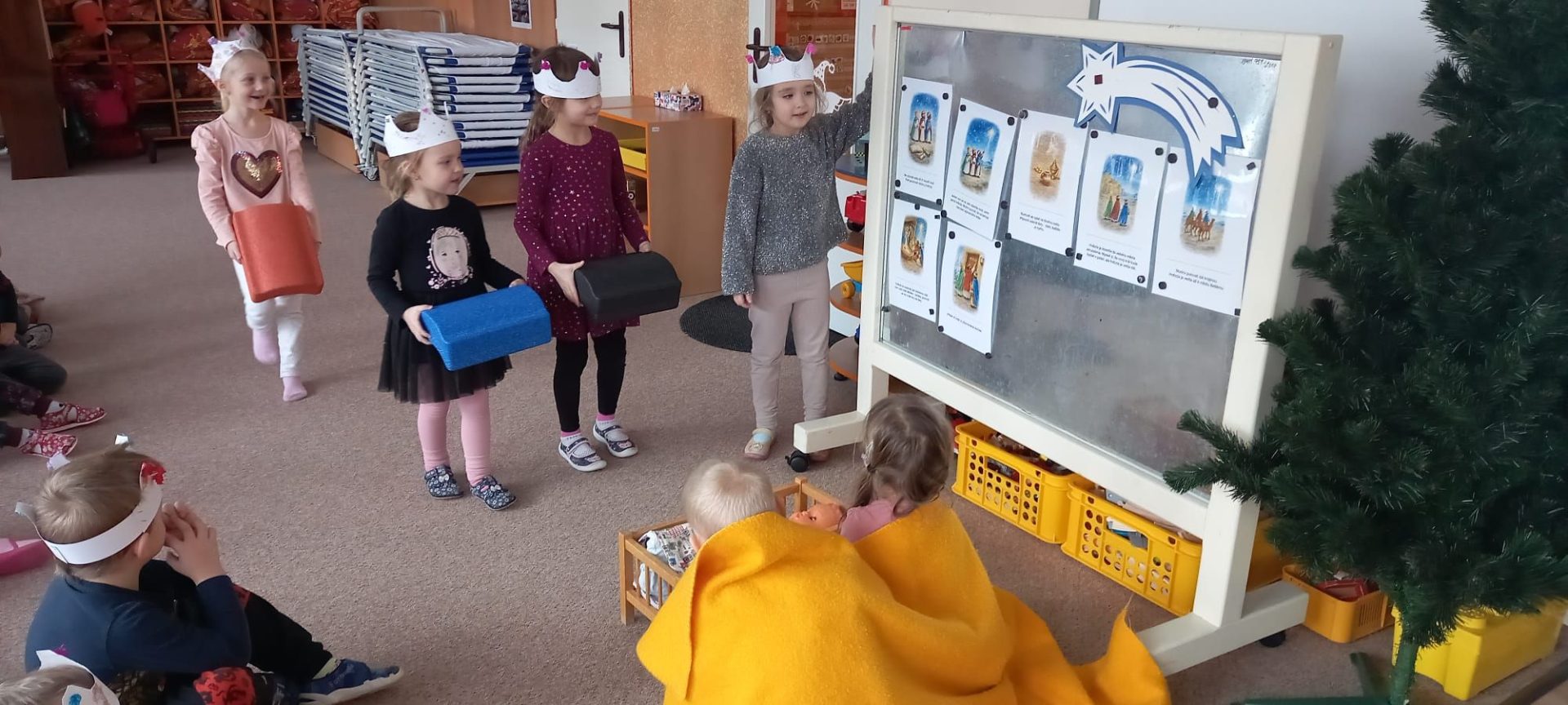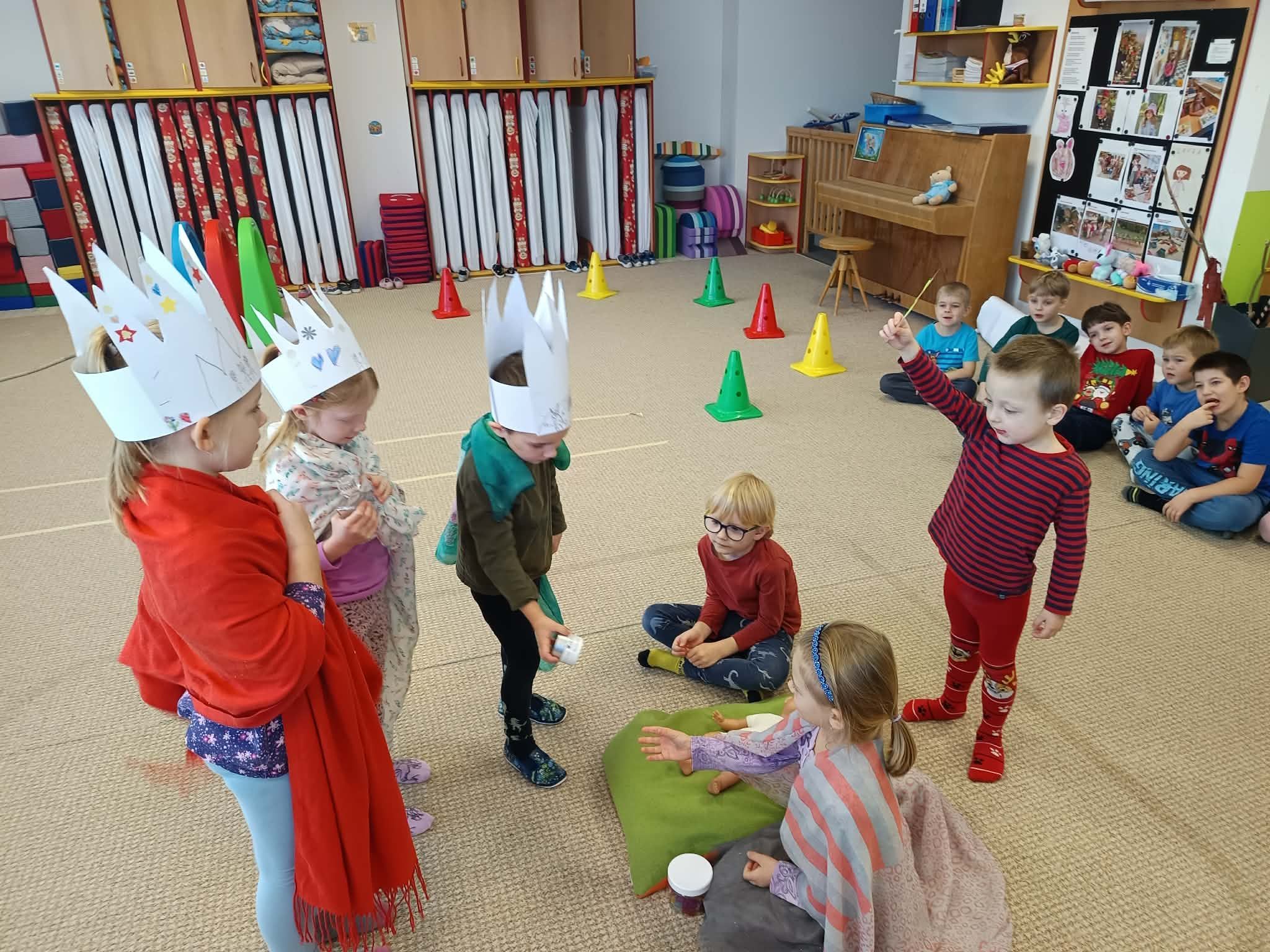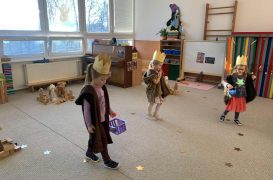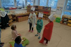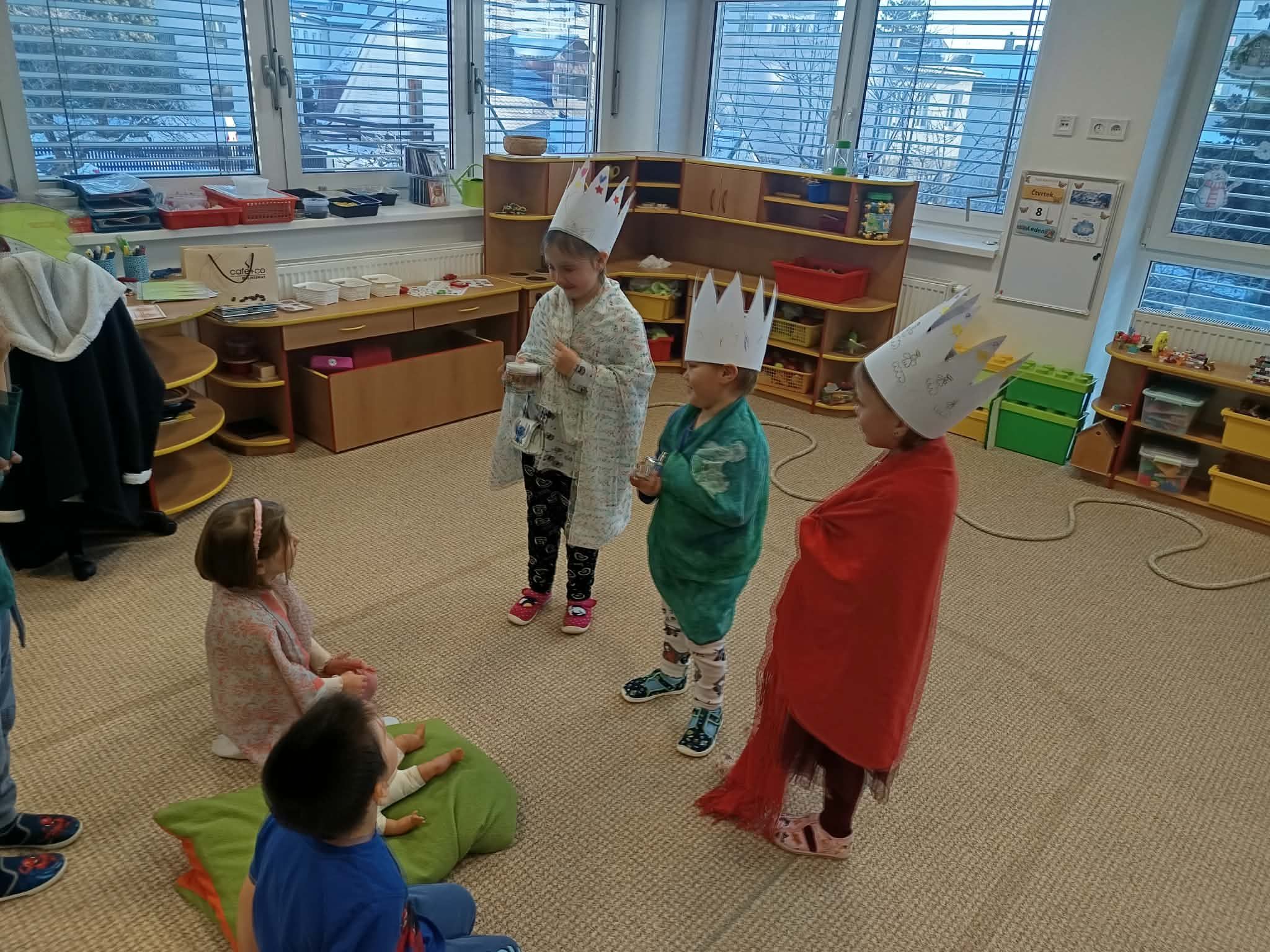 Vánoce utekly jako voda a my jsme se opět sešli v mateřské škole. Začátek nového roku se v naší škole nesl v duchu lidové tradice – Tří králů. Děti se pomocí her, příběhů a výtvarných aktivit seznamovaly s putováním králů a jejich jmény. Během celého týdne se děti učily zpívat koledu, kterou jsme si během koledování po mateřské škole společně zazpívali.